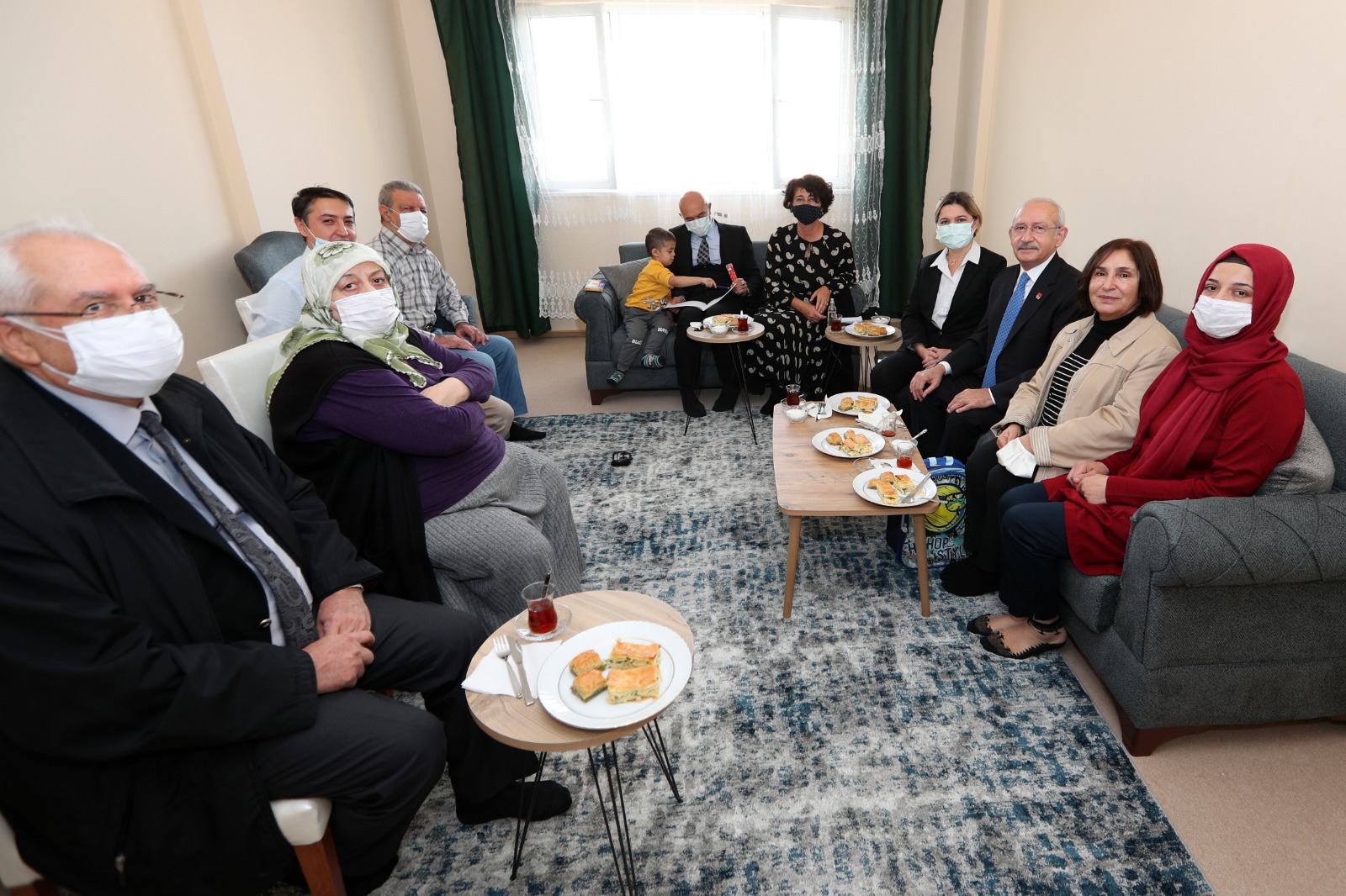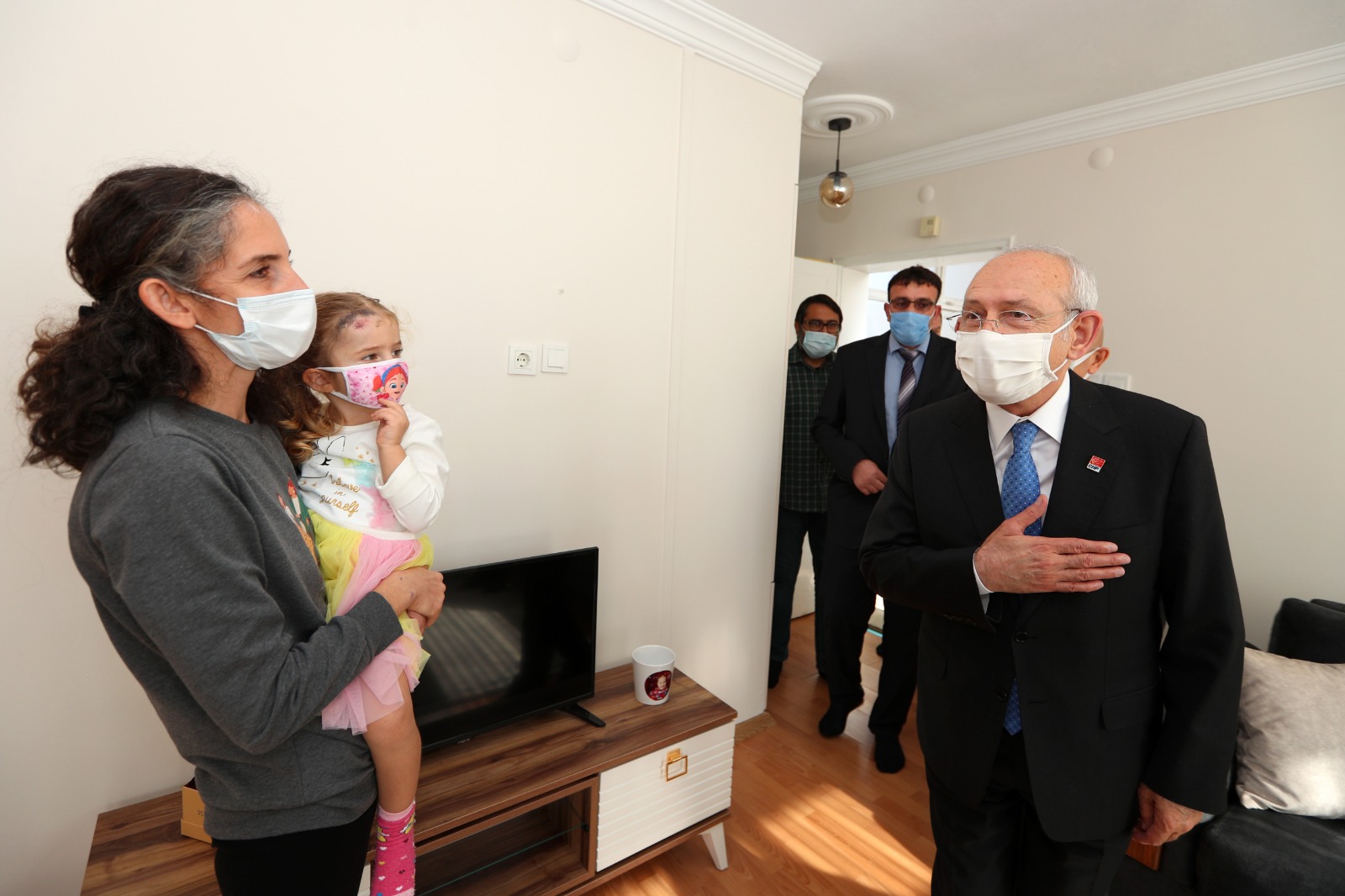 Kılıçdaroğlu’na depremzedelerden Türkyıldırım ve Albayrak ailelerini ziyaretinde pandemi önlemleri nedeniyle yalnızca eşi Selvi Kılıçdaroğlu, CHP Genel Sekreteri Selin Sayek Böke, İzmir Büyükşehir Belediye Başkanı Tunç Soyer, eşi Neptün Soyer ve Karabağlar Belediye Başkanı Muhittin Selvitopu eşlik etti. Ziyarette, Kılıçdaroğlu depremzedelere geçmiş olsun dileklerini iletti, çocuklara da oyuncak hediye etti.