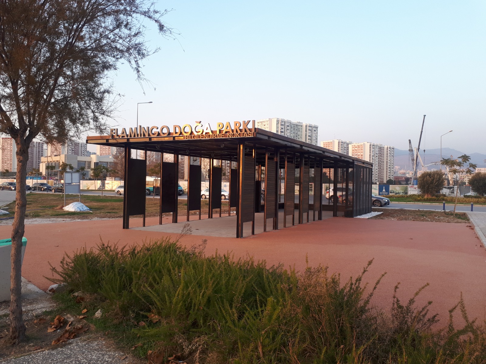 Projenin ilk etap çalışmaları kapsamında Bostanlı Balıkçı Barınağı’nın çıkışına Flamingo Doğa Parkı Bilgilendirme Noktası kuruldu. Gölgelikli toplanma ve oturma alanında 10 adet bilgilendirme panosu bulunuyor. Bu panolarda Gediz Deltası hakkında genel bilgiler, deltanın oluşumu, bölgede yaşayan kuşlar, lagünler, kıyı bataklıkları, deltanın sahip olduğu biyoçeşitlilik, deltada balıkçılık, sazlıklar, Üçtepeler ve balıklar konu başlıklarında bilgilendirmeler yer alacak. Bu ünite aynı zamanda delta boyunca yapılacak kuş gözlem aktivitelerinin buluşma ve başlangıç noktası olacak. Ayrıca balıkçı barınağının içerisinde “Kuş Gözlem Ünitesi” oluşturuldu. Gölgelikli gözlem alanı ve oturma yüzeylerinin yer aldığı ünitede bu bölgede gözlemlenebilen Pelikan, Martı, Sumru, Batağan, Karabatak, Flamingo ve Sakarmeke türleri ile ilgili bilgilendirme panoları yer alacak.