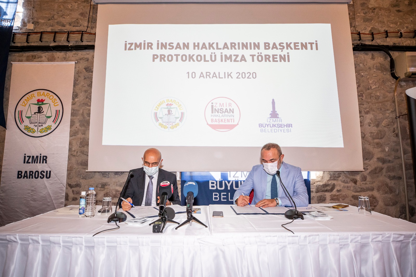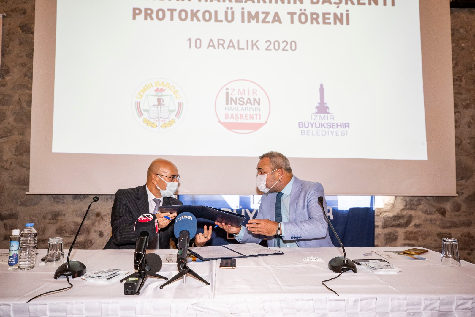 İzmir Büyükşehir Belediyesi ve İzmir Barosu işbirliğiyle hayata geçirilecek "İzmir İnsan Haklarının Başkenti Projesi" kapsamındaki protokol 10 Aralık Dünya İnsan Hakları Günü'nde törenle imzalandı. Protokole İzmir Büyükşehir Belediyesi adına Başkan Tunç Soyer, İzmir Barosu adına ise Baro Başkanı Avukat Özkan Yücel imza attı. Başkan Soyer, ilk kez bir belediyenin adalete erişim konusunda kaynak ayırdığını söyledi.
