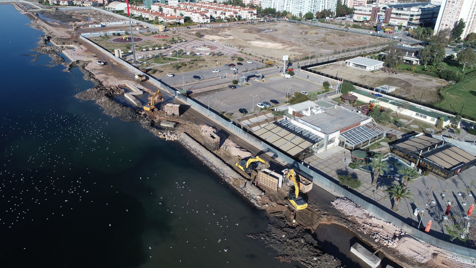 Peynircioğlu Deresi yakınındaki Deniz Kent Restoran önünden başlayıp kuzeye doğru Mavi Ada bölgesini de içine alan 2 kilometrelik sahil hattında Fen İşleri Daire Başkanlığı tarafından yürütülen Kıyı Rehabilitasyon Projesi çalışmaları hakkında bilgi veren İzmir Büyükşehir Belediyesi Genel Sekreter Yardımcısı Eser Atak, “Sahil bölgesinde hem deniz suyu kabarmasıyla meydana gelebilecek taşkını hem de zemin altından deniz suyu geçişini engellemek için yerin 4 metre altında yapımına başladığımız 2 bin 88 metrelik su içi betonunun 620 metresini tamamladık. Ön kısımda yeniden imal edilecek kaya tahkimatın da kazısına başladık. Bu proje sadece bugünü kurtarmaya yönelik hazırlanmadı, küresel ısınmadan dolayı deniz seviyesi yükseliyor. Buranın geleceğine yönelik de bir sorun büyük ölçüde çözülmüş olacak” diye konuştu.
