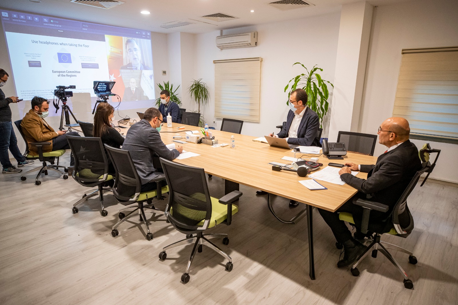 İzmir Büyükşehir Belediye Başkanı Tunç Soyer üyesi olduğu Avrupa Bölgeler Komitesi Türkiye Çalışma Grubu’nun çevrim içi toplantısında İzmir’in krizlere karşı mücadele deneyimini anlattı. Avrupa Bölgeler Komitesi’nin daveti üzerine Türkiye Çalışma Grubu’nun 24. toplantısının Covid-19 ile mücadele konulu oturumuna konuşmacı olarak katılan Başkan Tunç Soyer, İzmir’in son on sekiz ayda tarihinin en büyük orman yangınlarından biri, deprem, depremin tetiklediği tsunami ve iki pandemi dalgasıyla karşı karşıya kaldığını belirterek bu krizlerde dirençli kent olmanın önemini bir kez daha anladıklarını dile getirdi.