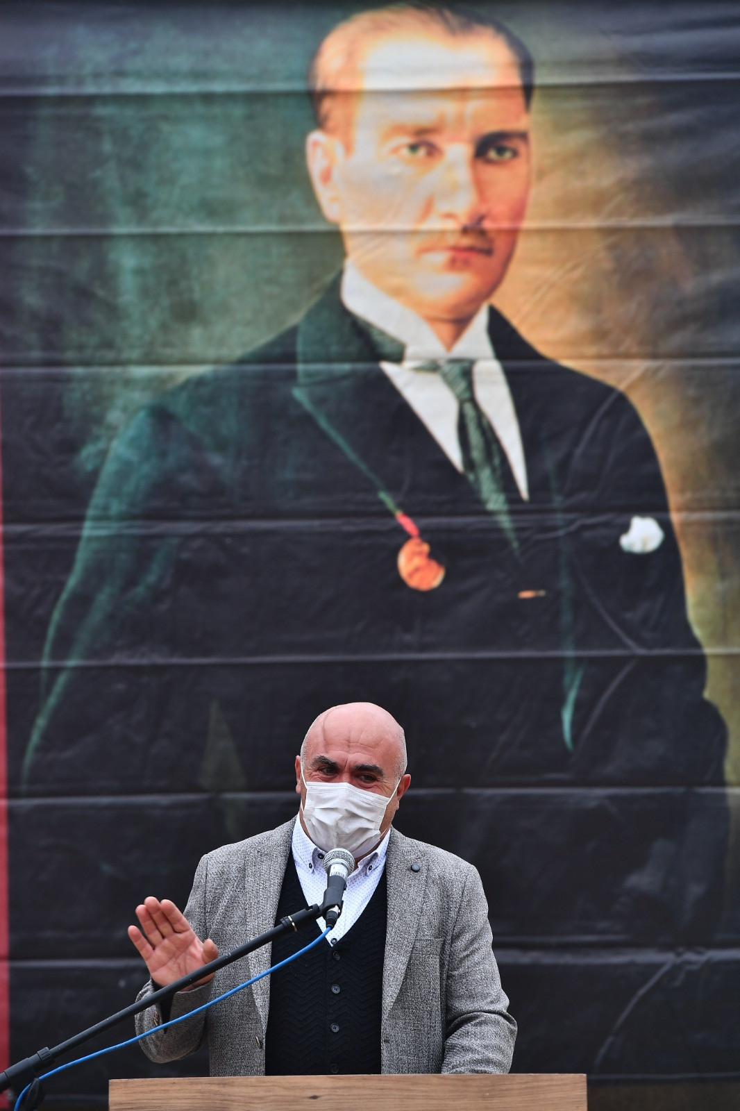 Törende konuşan İzmir Büyükşehir Belediyesi Genel Sekreteri Dr. Buğra Gökçe, Büyükşehir'in Tire'de yaptığı çalışmalara ilişkin bilgi verdi. İlçede bugüne kadar 342 bin 700 adet meyve ve zeytin fidanı dağıtıldığını söyleyen Buğra Gökçe, “2020 yılının ikinci dönemini kapsayan fidan dağıtımları ise bu hafta başladı. Bu kapsamda Tire'de 13 bin 220 adet badem, kiraz, ceviz, incir ve kestane fidanını üreticilerimize dağıtmaya başlıyoruz. Bu kadim üretimin, bölgenin doğasına uygun üretimin devam etmesi demek. Bu meyve ve sebze fidanlarının büyümesi, sizin yaşam kalitenizi artıracak. Yine burada istihdam edilecek, burada yaşayacak kadar para kazanmanızı sağlayacak bir unsur haline gelmesi çok kıymetli” dedi.