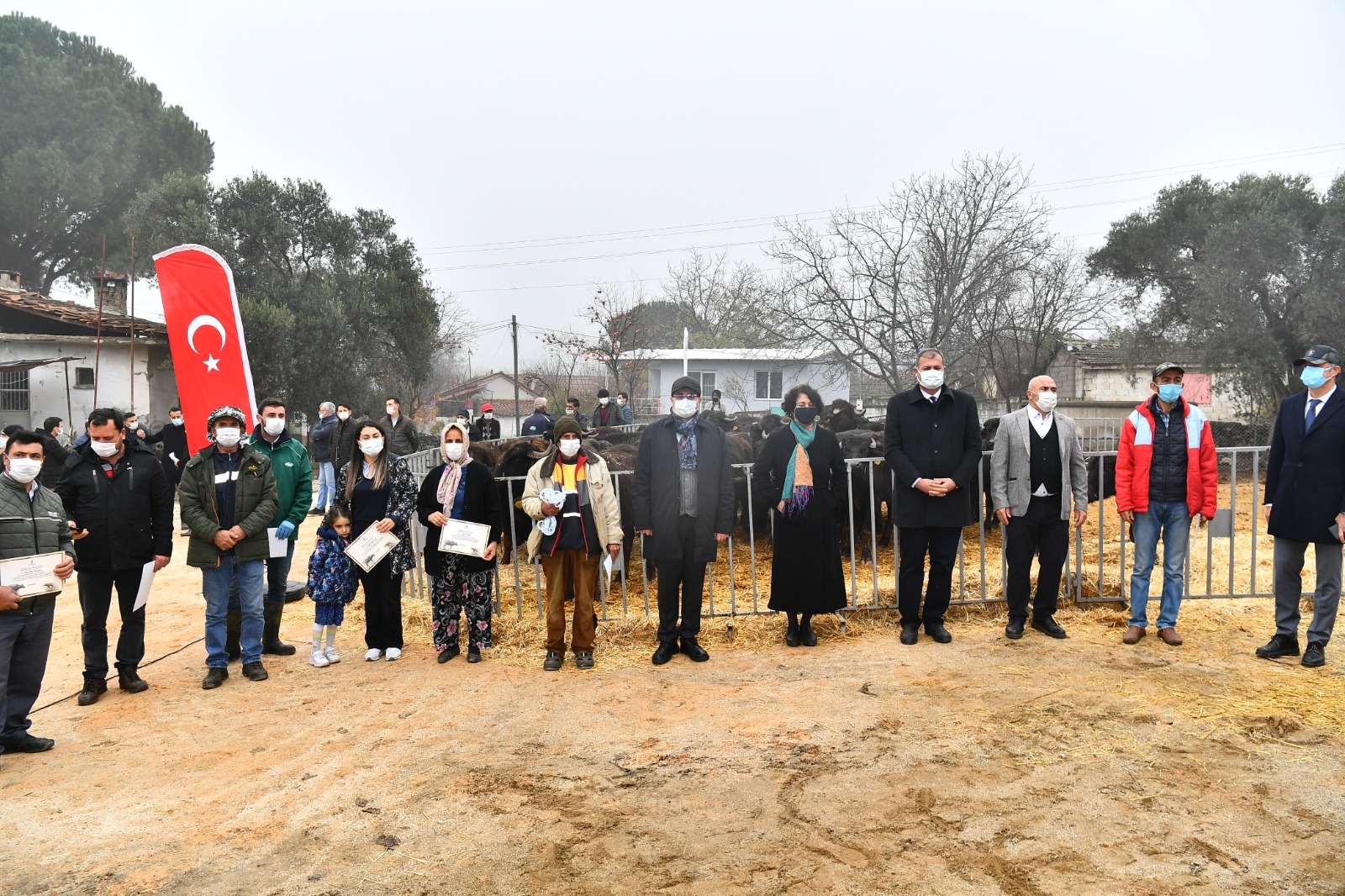Tire'de eğitimlerini tamamlayan 2’si kadın toplam 10 üreticiye tescilli yerli ırk olan 33 Anadolu mandası hibe etti. Mehmetler Köyü'nde düzenlenen törene İzmir Büyükşehir Belediyesi Genel Sekreteri Dr. Buğra Gökçe, İzmir Köy-Koop Başkanı Neptün Soyer, Tire Belediye Başkanı Salih Atakan Duran, İzmir Büyükşehir Belediyesi Genel Sekreter Yardımcısı Ertuğrul Tugay, İzmir Köy-Koop Müdürü Yasemin Güngör Engin, Boğaziçi Tarımsal Kalkınma Kooperatif Başkanı Hüseyin Çelik, Selçuk Tarımsal Kalkınma Kooperatif Başkanı Gürsu Özütürk, Mehmetler Köyü Muhtarı Hüseyin Dönmez, Büyükkale Köyü Muhtarı Neclet Küçük, üreticiler ve köylüler katıldı.