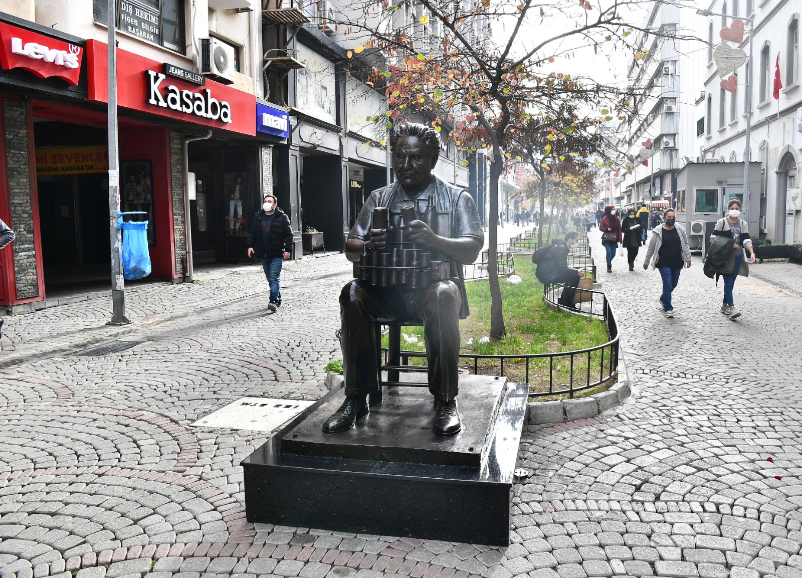 Benzinci Kör Hafız heykeli Kemeraltı ile buluştu