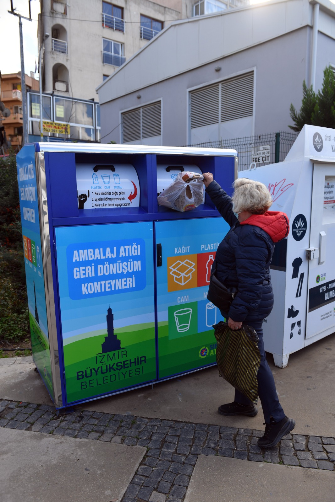 Sürdürülebilir atık yönetimi uygulamaları ile öne çıkan İzmir Büyükşehir Belediyesi, atıkların kaynağında ayrı toplanarak geri dönüşüme kazandırılmasını teşvik etmek amacıyla ambalaj atığı geri dönüşüm konteynerleri tasarladı. Konteynerler kent genelindeki cadde ve meydanlara yerleştirilmeye başlandı.