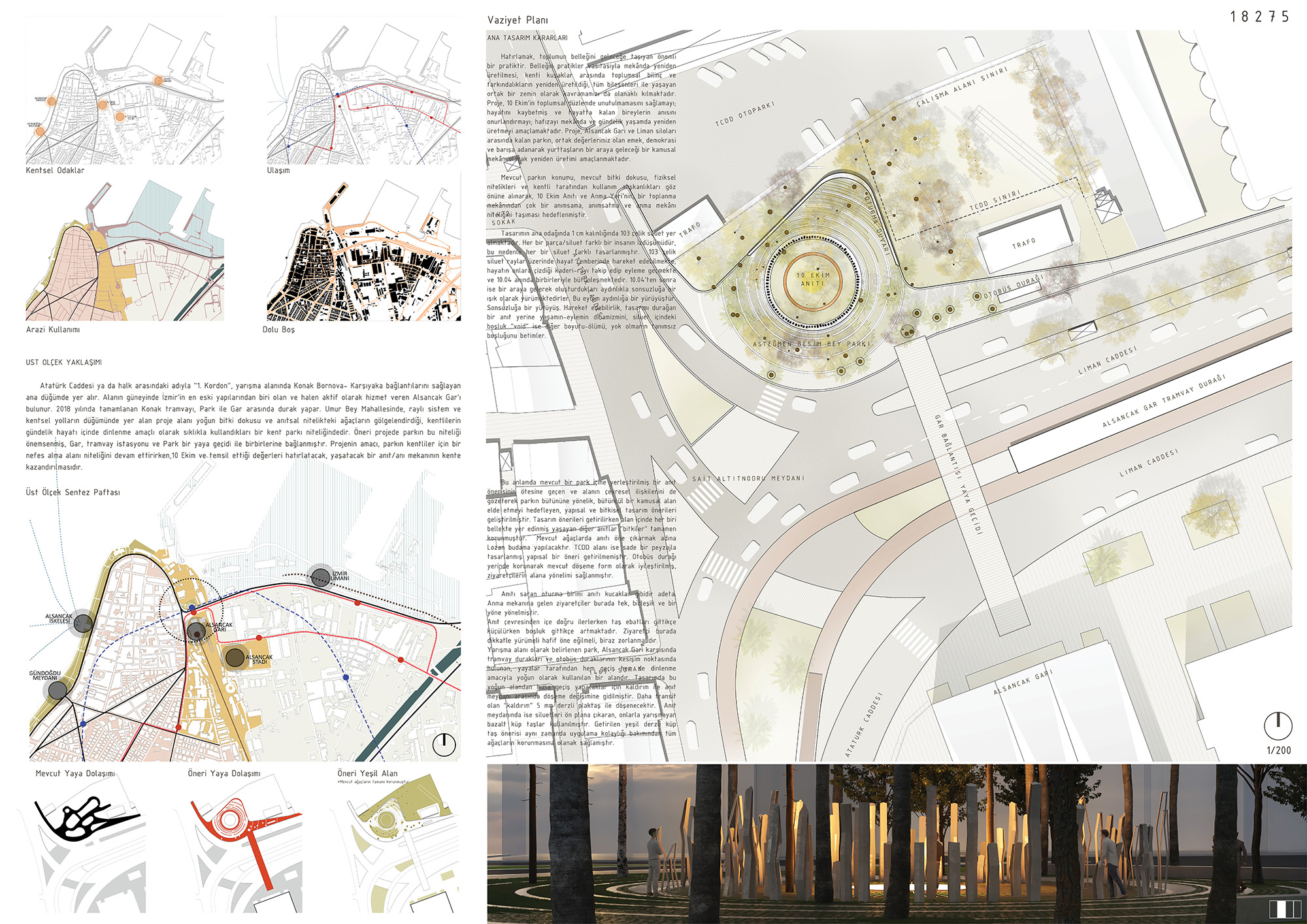 Üç aşamalı bir değerlendirme sonucunda birinci seçilen proje, 10 Ekim’in unutulmamasını, hayatını kaybetmiş ya da hayatta kalan bireylerin anısını onurlandırmayı, bir anımsama, anımsatma ve anma mekânının kente kazandırılmasını amaçlıyor. Alsancak’ta Atatürk Caddesi ile Liman Caddesi’nin kesiştiği yerde bulunan Asteğmen Besim Bey Parkı’nda uygulanacak proje, alanın emek, demokrasi ve barışa adanarak yurttaşların bir araya geleceği bir kamusal mekân olarak yeniden üretimini hedefliyor.
