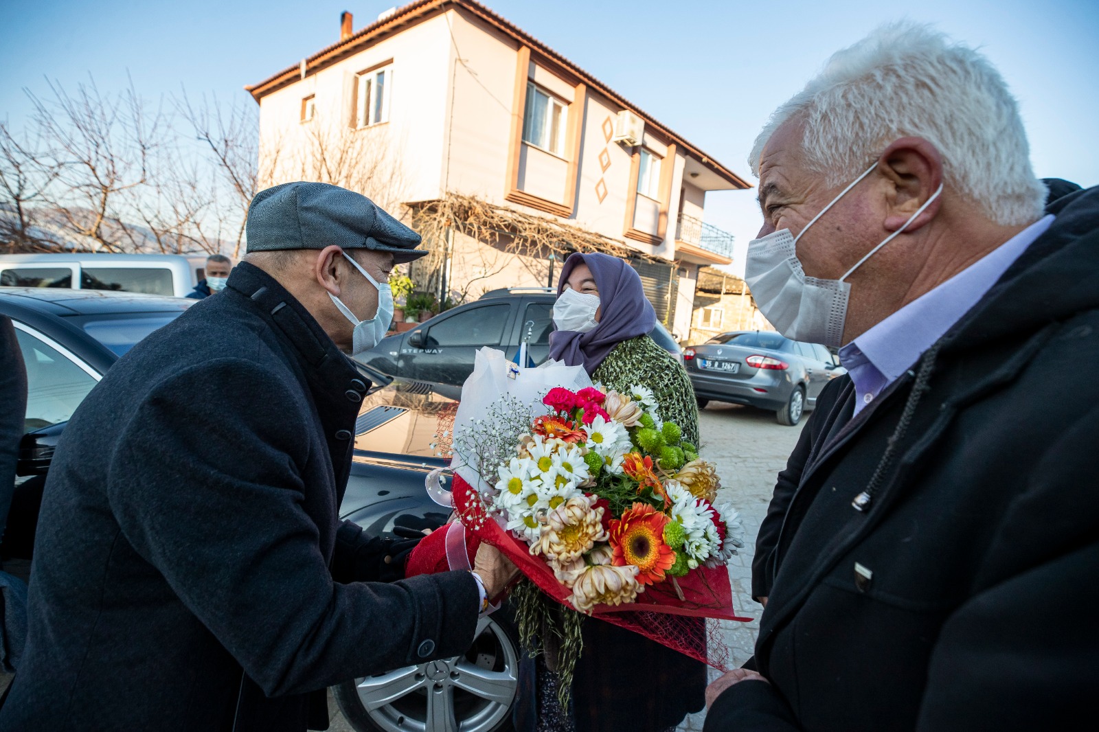 Başkan Tunç Soyer, programı kapsamında İzmir Büyükşehir Belediyesi tarafından hibe edilen Tahirova cinsi koyunlarla geçimi sağlayan üretici Erol Kart'ı da ziyaret etti.