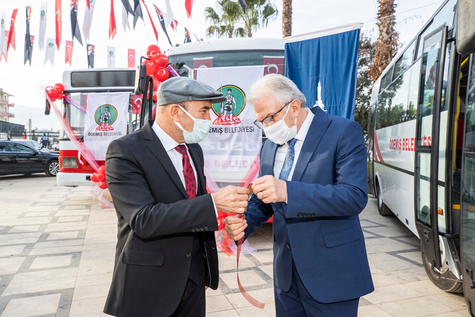 Ödemiş Belediyesi ziyaret etti. Eşi Neptün Soyer, İzmir Büyükşehir Belediye Başkan Vekili Mustafa Özuslu ve İzmir Büyükşehir Belediyesi Genel Sekreteri Dr. Buğra Gökçe ile belediyeye gelen Tunç Soyer'i, Ödemiş Belediye Başkanı Mehmet Eriş ile eşi Selma Eriş karşıladı. Başkan Soyer daha sonra İzmir Büyükşehir Belediyesi tarafından Ödemiş Belediyesi'nin talebi üzerine ESHOT Genel Müdürlüğü filosundan ilçeye hibe edilen üç otobüsün anahtar teslim törenine katıldı. Soyer, ESHOT Genel Müdürü Erhan Bey ile araçların anahtarlarını Mehmet Eriş'e teslim etti.