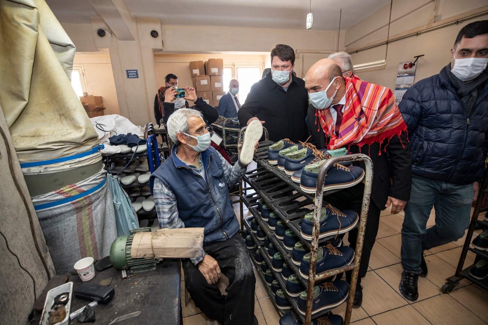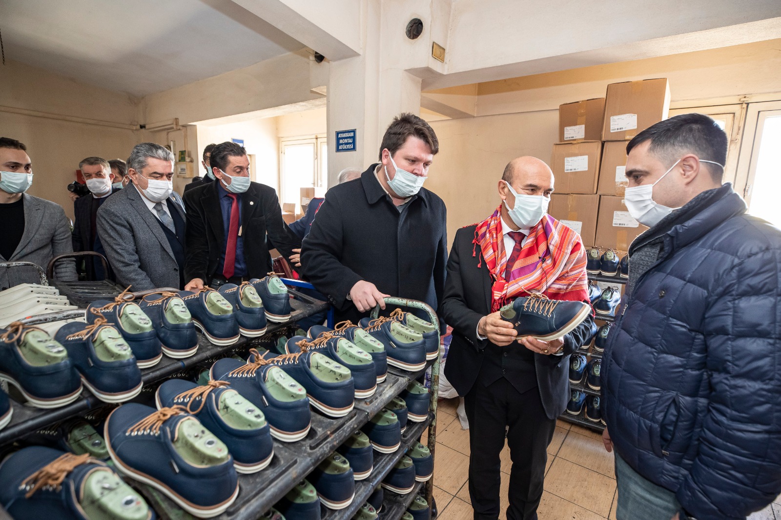 Ödemiş'te Ayakkabıcılar Sitesi'ni ziyaret eden İzmir Büyükşehir Belediye Başkanı Tunç Soyer, ülkenin içinde bulunduğu ekonomik sıkınlar nedeniyle zor günler geçiren esnafa moral verdi. Esnafın sorunlarını dinleyen Başkan Soyer, Ödemiş Ayakkabı Üretim ve Pazarlama Kooperatifi ile ayakkabılı alımı konusunda protokol yapacaklarını, İzmir'in arka sıralarındaki çocuklar için bot alımını da bu protokolün ardından gerçekleştireceklerini söyledi. Soyer ayrıca İzmir'in marka ayakkabısı olmasının gerekliliğine de değindi.