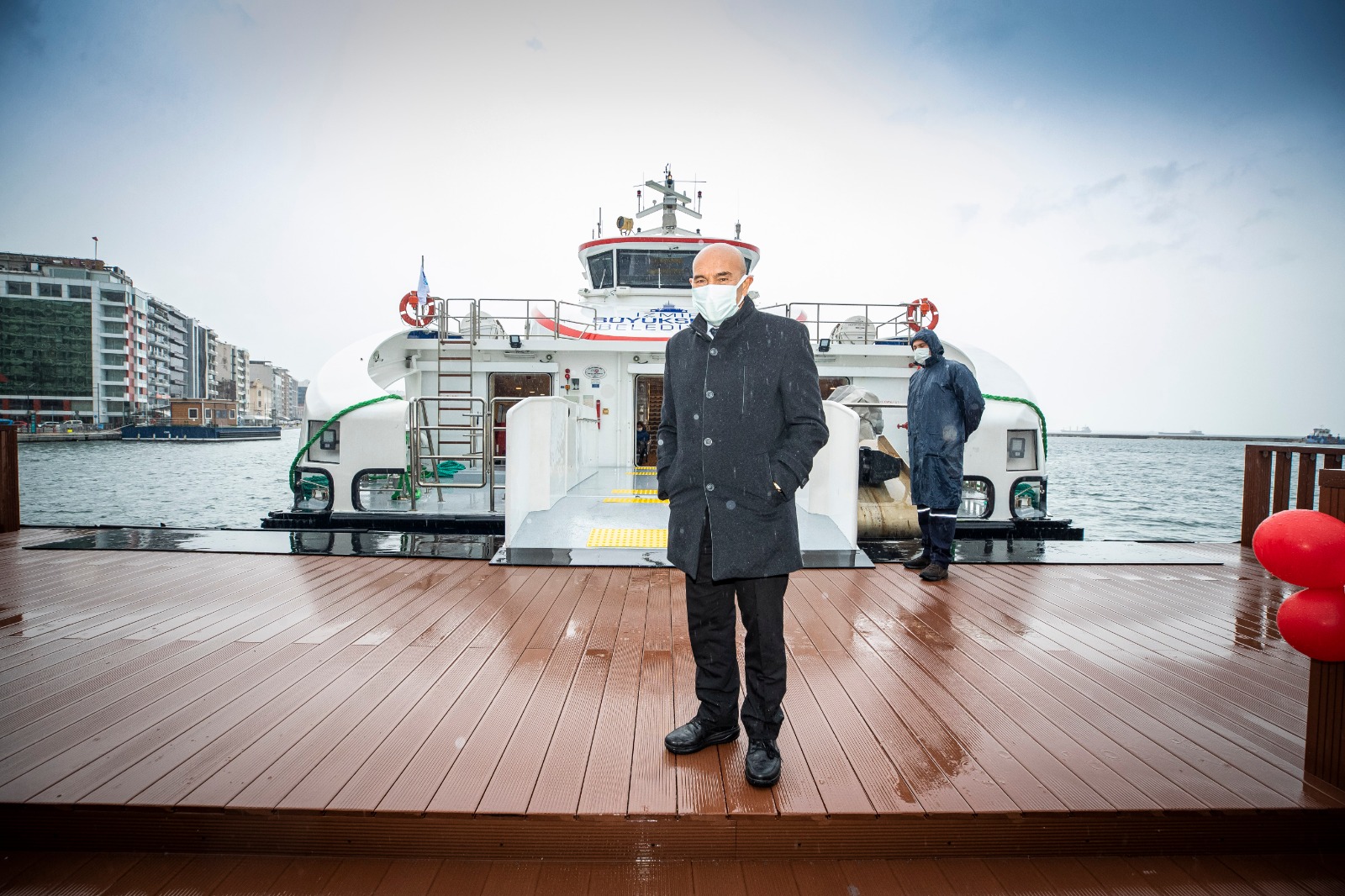 İzmir Büyükşehir Belediye Başkanı Tunç Soyer, tadilatı tamamlanarak yeniden hizmete giren Pasaport İskelesi'nin ilk yolcularını Karaburunlu üreticilerden alınan nergis çiçeği ile karşıladı.
