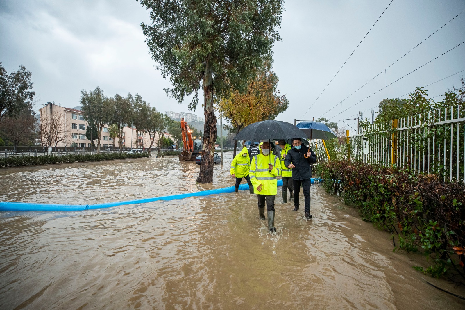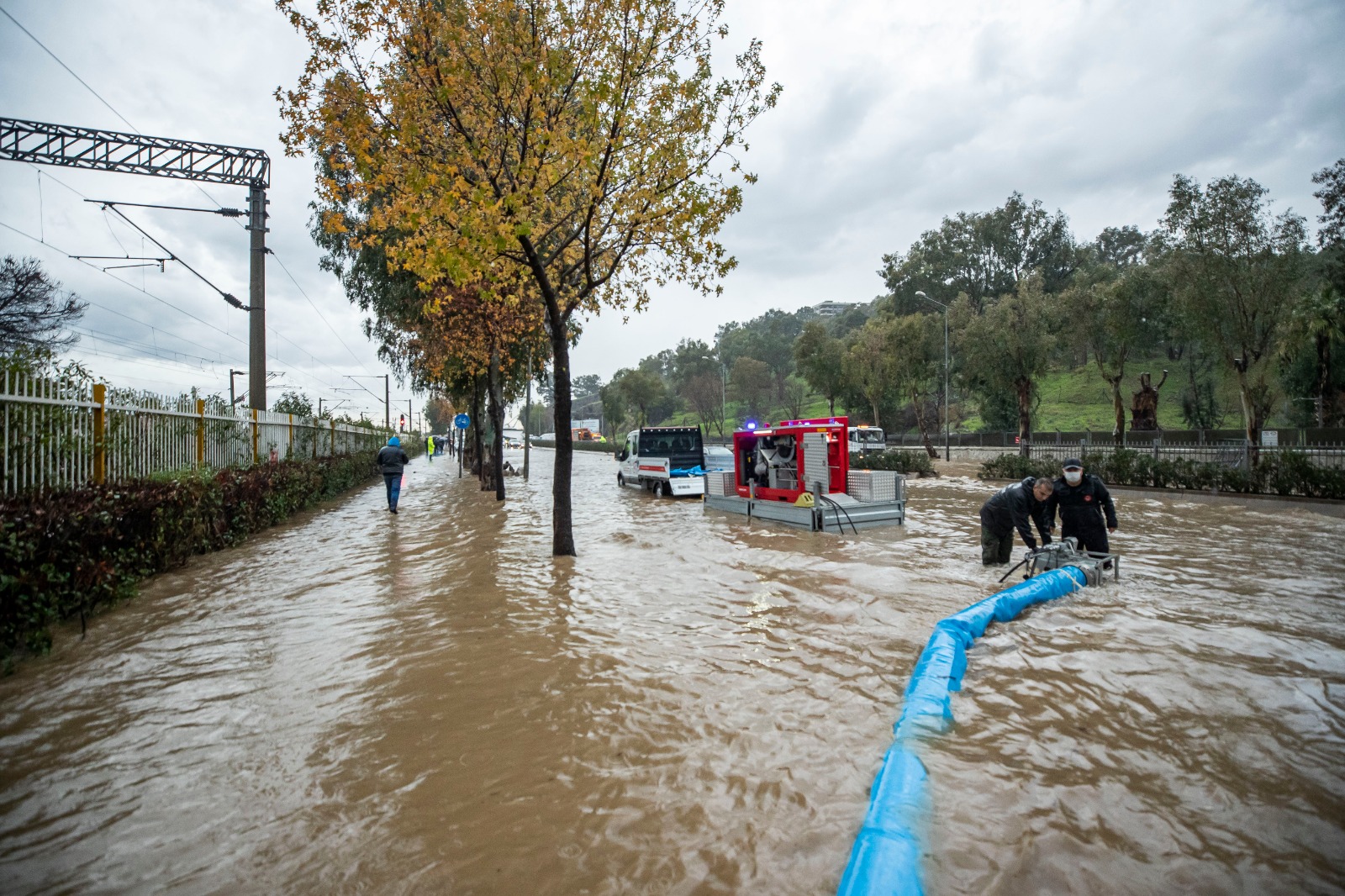 İzmir Büyükşehir Belediyesi ekipleri kentte gece saatlerinden itibaren aralıksız yağan yağmurun yarattığı olumsuzlukları gidermek için seferber oldu. Altınyol'un Turan bölümünde dereden ve üst kotlardan gelen yağmur sularının caddede birikmesi ve trafik akışında sıkıntıya neden olması nedeniyle İtfaiye, Fen İşleri ve İZSU Genel Müdürlüğü harekete geçti. Ekipler orta refüjde belirli aralıklarla suyun deniz tarafına akışını sağlayacak kesitler açtı. Bu arada İtfaiye ekipleri de kurdukları iki adet büyük su pompası ile yoldaki suyun denize tahliyesini sağladı. Su seviyesinin düşmesi ile birlikte yolda trafik akışı sağlanmaya başlandı. Gelişmeleri afet koordinasyon merkezi olarak kullanılan İzmir Ulaşım Merkezi'nden (İZUM) izleyen İzmir Büyükşehir Belediye Başkanı Tunç Soyer, bölgeye giderek ekiplerin çalışmalarını koordine etti.