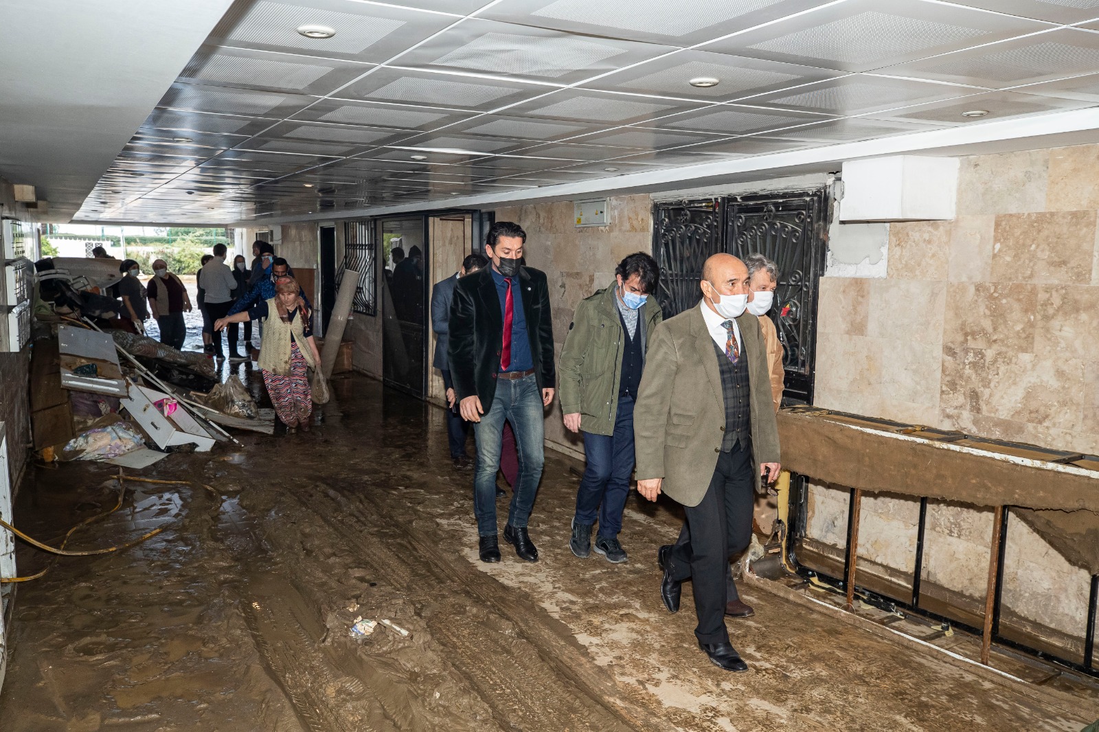 Başkan Soyer selden zarar gören aileleri ve esnafı ziyaret etti