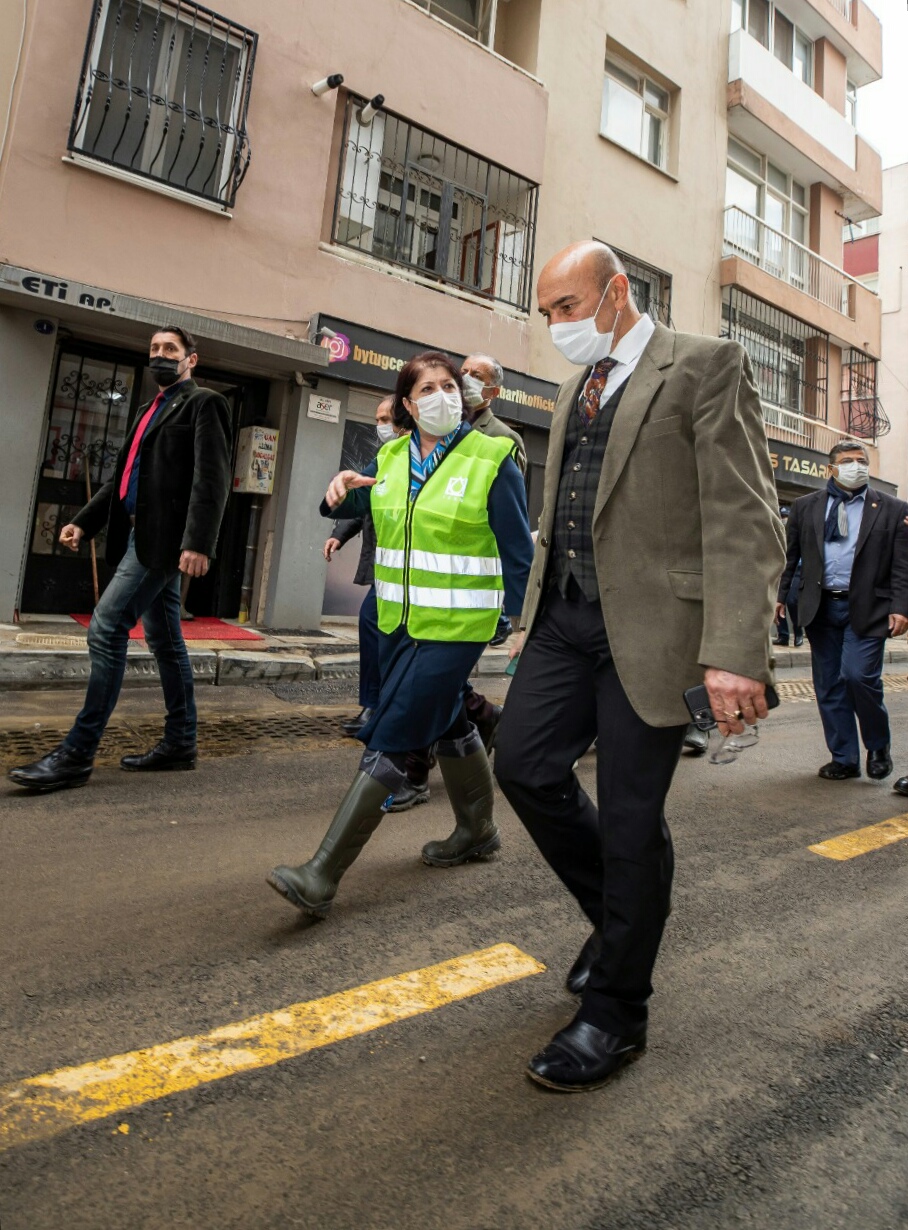 Başkan Soyer, otelde kalan selzede ailelerin ziyaretinin ardından Güzelyalı'ya giderek Poligon Deresi'nin taşması sonucu evleri ve işyerleri zarar gören yurttaşları ziyaret etti. Ziyarete CHP Yerel Yönetimlerden Sorumlu Genel Başkan Yardımcısı Seyit Torun, CHP İzmir Milletvekili Kani Beko, Ednan Arslan, Murat Bakan, Kamil Okyay Sındır, Konak Belediye Başkanı Abdül Batur, İzmir Büyükşehir Belediyesi Genel Sekreteri Dr. Buğra Gökçe, genel sekreter yardımcıları Eser Atak, Ertuğrul Tugay, İZSU Genel Müdürü Aysel Özkan, Güzelyalı Muhtarı Nedim Altan katıldı. Esnafı tek tek gezerek sorunlarını ve ihtiyaçlarını dinleyen Başkan Soyer, İzmir Büyükşehir Belediyesi'nin yanlarında olduğunu, ekiplerin hasar tespit çalışmalarını sürdürdüğünü, ihtiyacı olan tüm esnafa ve yurttaşa gereken desteğin verileceğini belirtti.