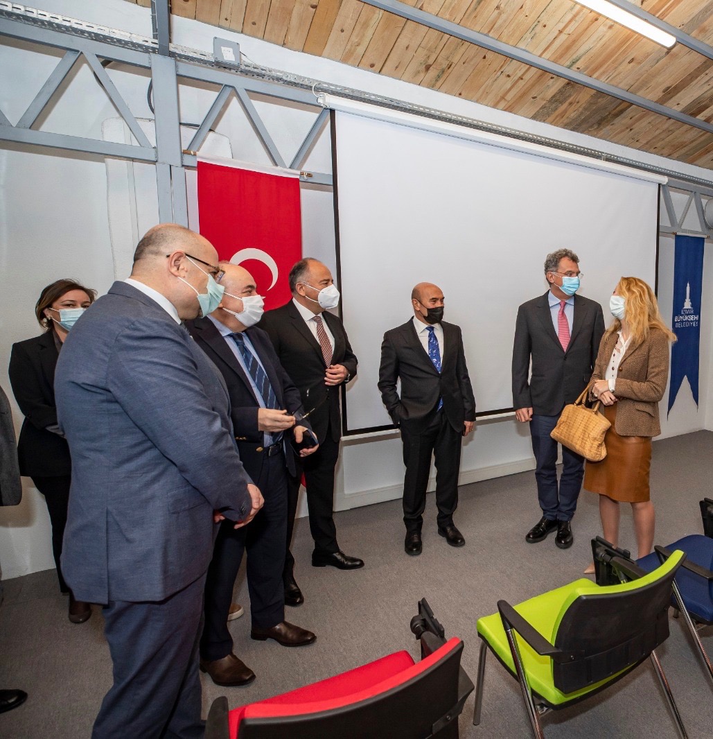 Konak Umurbey Mahallesi’nde kurulan Merkez’in açılış törenine TÜSİAD Yönetim Kurulu Başkanı Simone Kaslowski, CHP Genel Başkan Yardımcısı Ali Öztunç, CHP Parti Meclisi (PM) Üyeleri Rıfat Nalbantoğlu ve Devrim Barış Çelik, CHP İzmir Milletvekilleri Tacettin Bayır, Atilla Sertel, Konak Belediye Başkanı Abdül Batur, Karşıyaka Belediye Başkanı Cemil Tugay, Gaziemir Belediye Başkanı Halil Arda, İzmir Ticaret Odası Başkanı Mahmut Özgener, Ege İhracatçı Birlikleri (EİB) Koordinatör Başkanı Jak Eskinazi, Ege Sanayicileri ve İşinsanları Derneği (ESİAD) Başkanı Fadıl Sivri, Yaşar Üniversitesi Rektörü Prof. Dr. Mehmet Cemali Dinçer, TÜSİAD Yönetim Kurulu Üyesi, Girişimcilik ve Gençlik Yuvarlak Masa Başkanı İrem Oral Kayacık, Esnaf ve Sanatkarlar Odaları Birliği (İESOB) Başkanı Zekeriya Mutlu ve Büyükşehir bürokratları katıldı. Açılış öncesi TÜSİAD Yönetim Kurulu Başkanı Simone Kaslowski, Başkan Tunç Soyer’i makamında ziyaret etti.