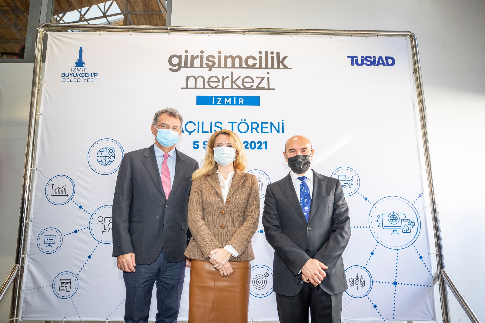 TÜSİAD Yönetim Kurulu Başkanı Simone Kaslowski ise törendeki konuşmasında “Yaklaşık 3 trilyon dolar değerlemeye sahip küresel startup ekonomisindeki payımızın yükselmesi ülkemizin gelişimi ve dönüşümü açısından kritik önem taşıyor. Vakit, Türkiye’nin girişimcilik kanatlarını açmasının vaktidir” dedi. TÜSİAD olarak uzun yıllardır Türkiye genelinde girişimcilik konusunda farkındalığı artırmaya, başta gençler olmak üzere tüm fikri olanları girişimciliğe teşvik etmeye yönelik kapsamlı çalışmalar yürüttüklerine dikkat çeken Simone Kaslowski “Bu inanç ile İzmir Büyükşehir Belediyesi ile birlikte hayata geçirdiğimiz Girişimcilik Merkezi’nin, İzmir'in girişimcilerle birlikte yenilikçi çözümler üretme kültürünün tüm Türkiye’ye yayılmasına öncülük edeceğine ve bu çerçevede 1300’ü aşkın belediyemize örnek oluşturacağına gönülden inanıyoruz” şeklinde konuştu. TÜSİAD Girişimcilik ve Gençlik Masası Başkanı İrem Oral Kayacık da “Merkez, TÜSİAD’ın ‘Türkiye’nin Girişimcilik Dönüşümü’ projesi kapsamında yerel yönetimlerle gerçekleştirdiği işbirliklerinin ilki. Diğer belediyelere örnek teşkil etmesini temenni ettiğimiz bir modelin ilk adımını atıyoruz” ded.