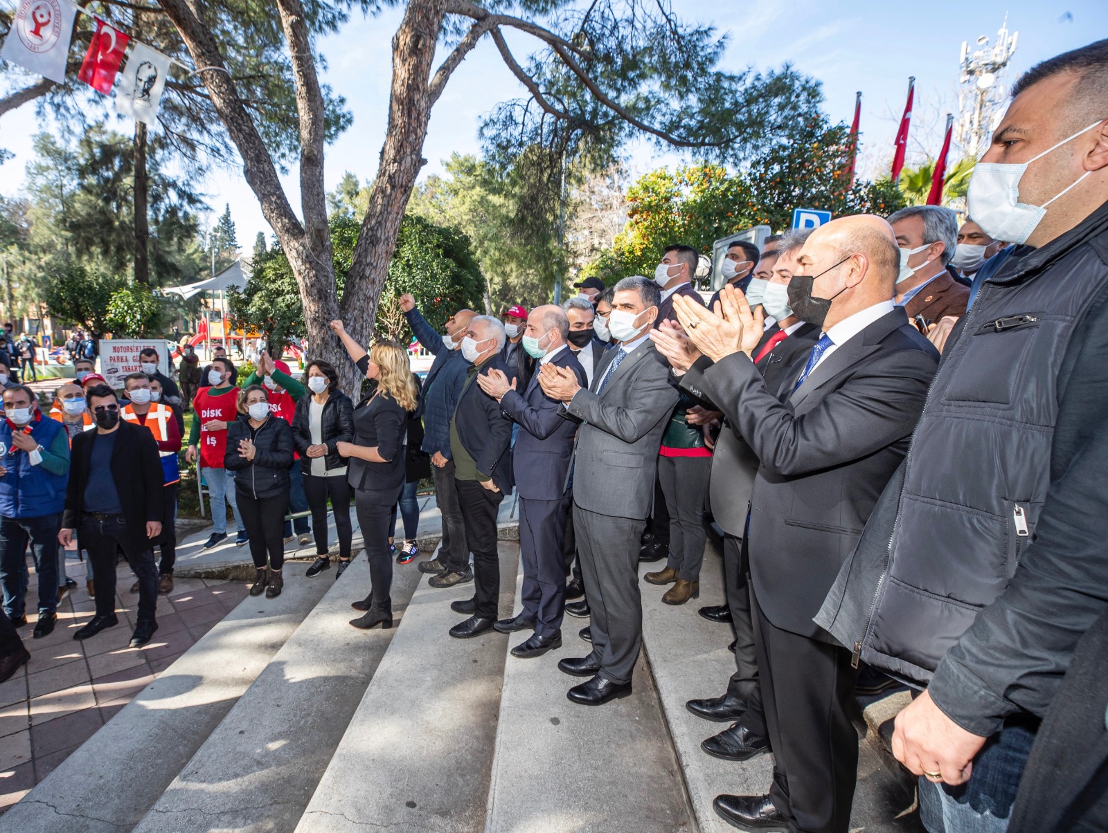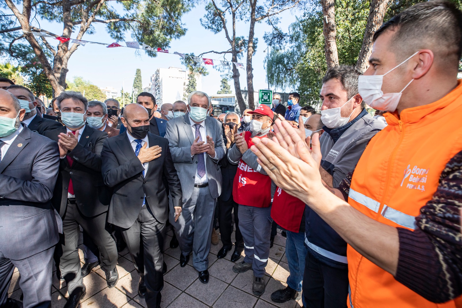 DİSK Ege Bölge Temsilcisi Memiş Sarı, işçiye verdikleri destekten ötürü İzmir Büyükşehir Belediye Başkanı Tunç Soyer ve Bornova Belediye Başkanı Mustafa İduğ'a teşekkür etti.