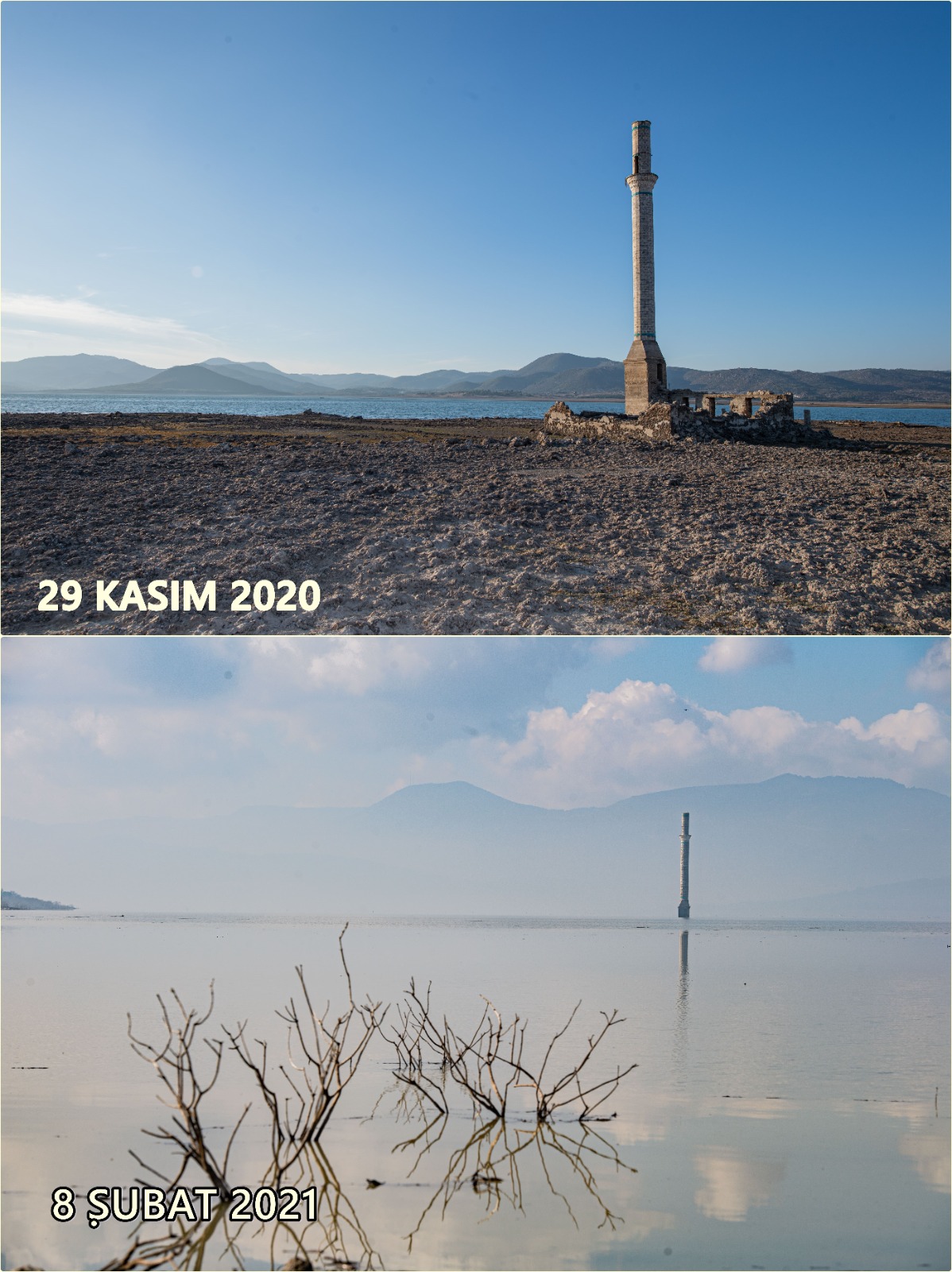Son yağışların ardından Tahtalı Barajı havzasında çekilen görüntüler, bir iki ay önce yürüyerek yanına gidilen eski Bulgurca Camii’nin yeniden sular altında kaldığını gösteriyor.