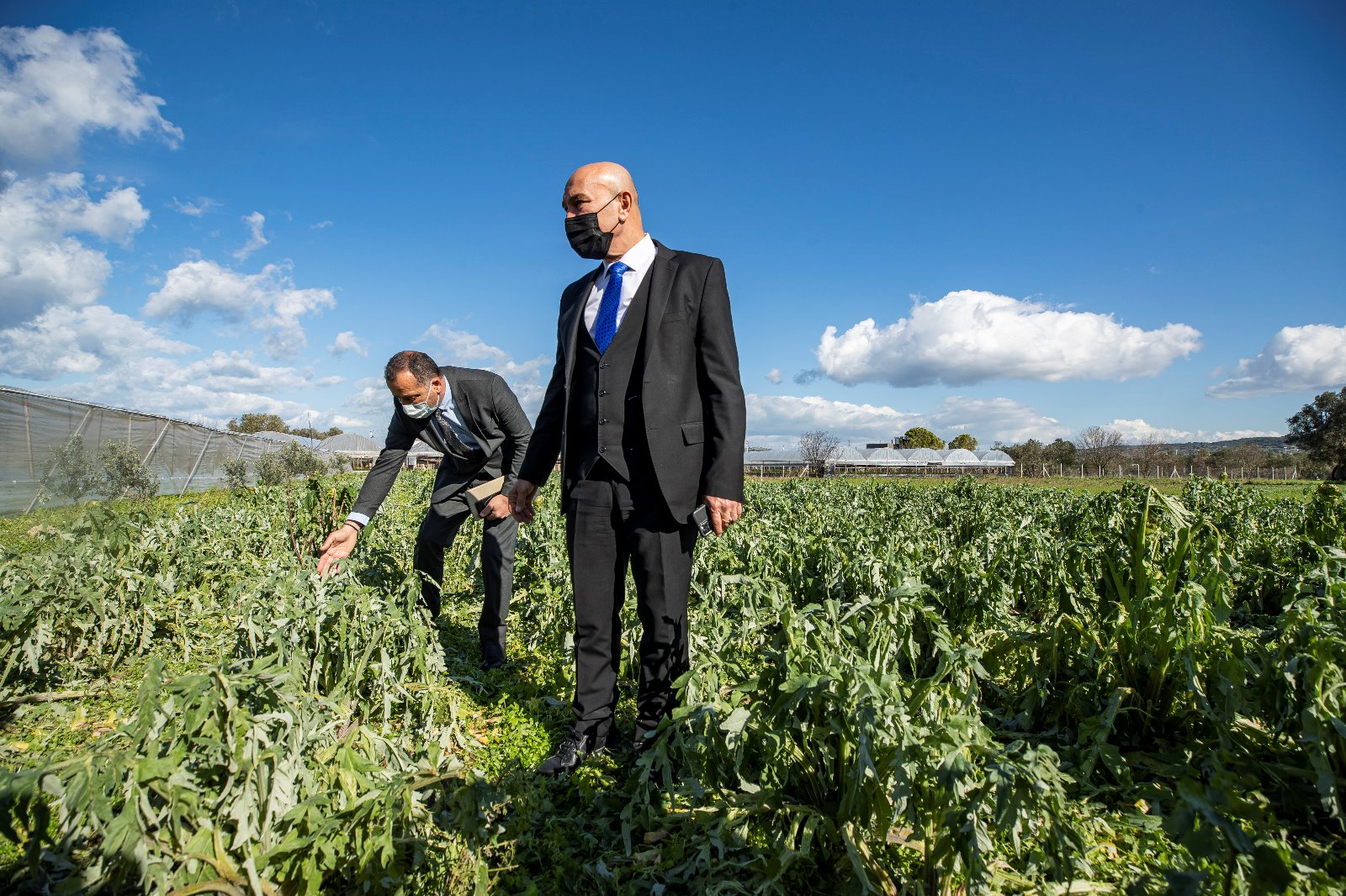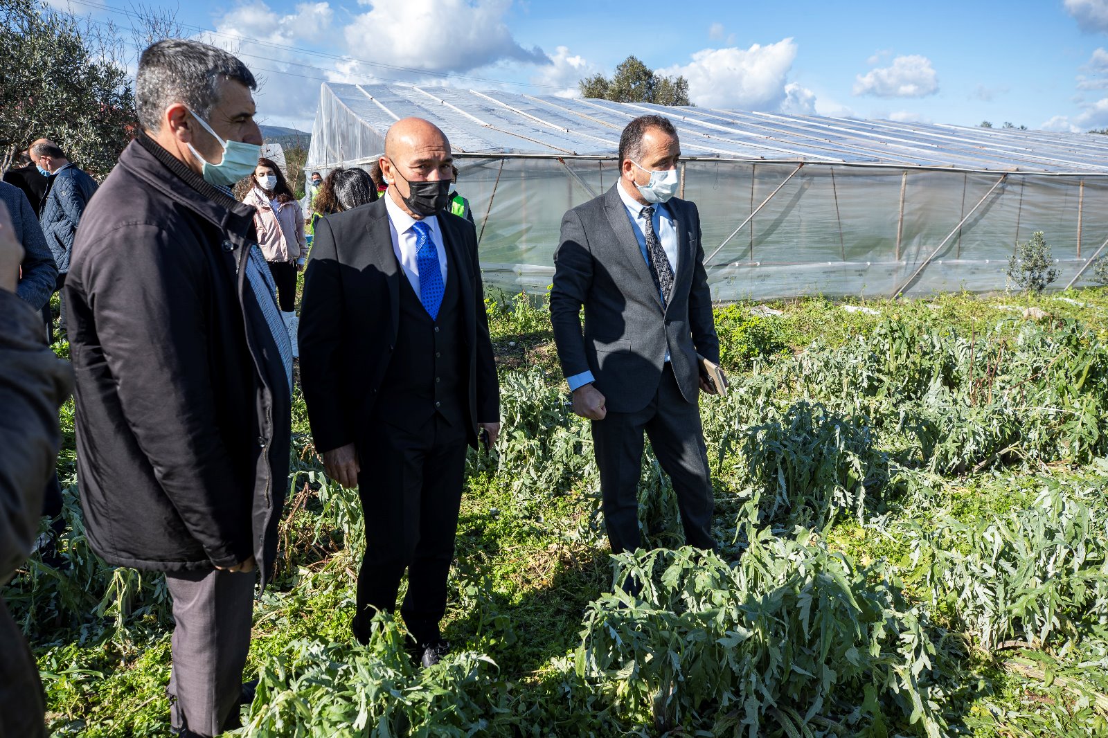 İzmir Büyükşehir Belediye Başkanı Tunç Soyer, dün akşam Alaçatı’da meydana gelen hortumun hasara neden olduğu bölgede yaptığı incelemelerin ardından Urla’nın Kuşçular köyüne giderek Genel Sekreter Dr. Buğra Gökçe ile birlikte dolu nedeniyle tarım alanları zarar gören üreticileri ziyaret etti. Soyer, burada İzmir Büyükşehir Belediyesi Tarımsal Hizmetler Dairesi Başkanı Şevket Meriç, İzmir Büyükşehir Belediyesi Muhtarlıklar Dairesi Yarımada Urla Şube Müdürü Yener Kırmızı, Kuşçular Urla Ziraat Odası Başkanı Muharrem Uslucan ve Kuşçular Köyü Muhtarı Mehmet Doğan ile bölge üreticilerinden bilgi aldı. Her zaman üreticilerin yanında olduklarını belirten Başkan Tunç Soyer, zarar tespit çalışmalarının hızlı bir şekilde yapılmasını istedi.