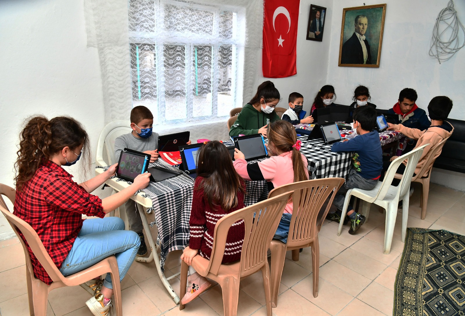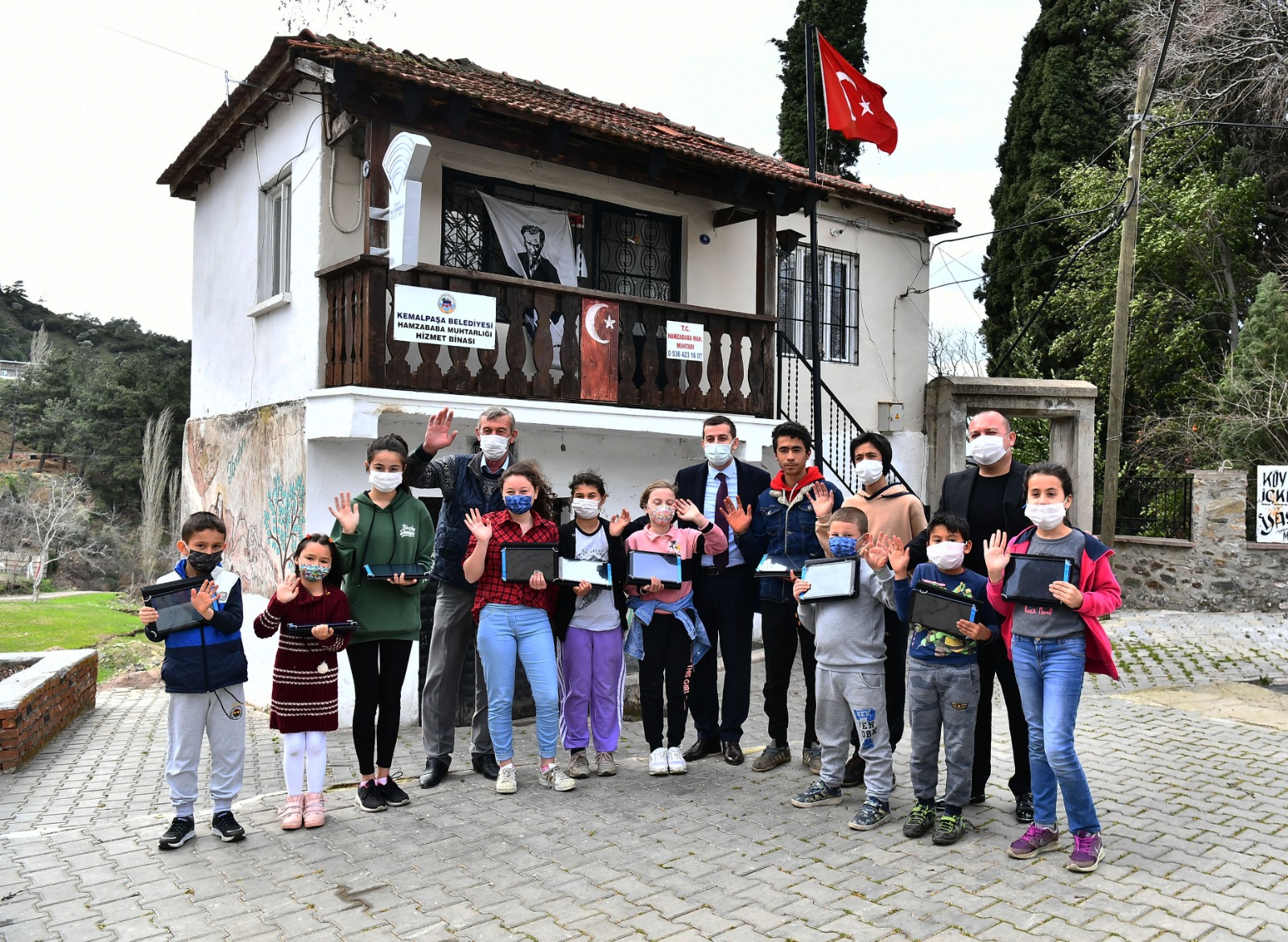 İzmir Büyükşehir Belediyesi'nin uzaktan eğitim sürecinde sıkıntı yaşayan öğrencilere verdiği destek devam ediyor. Büyükşehir Belediyesi evlerinde bilgisayar olmadığı için ebeveynlerinin telefonuyla derslere katılmak zorunda kalan Hamzababa Mahallesi’ndeki öğrencilere tablet dağıttı. EBA’ya ancak yüksek bir tepedeki barakadan bağlanabilen öğrenciler için İzmir Büyükşehir Belediyesi önce köye kablosuz internet hattı çekmişti. Köy kıraathanesi ise düzenlenerek EBA noktasına dönüştürülmüştü.
