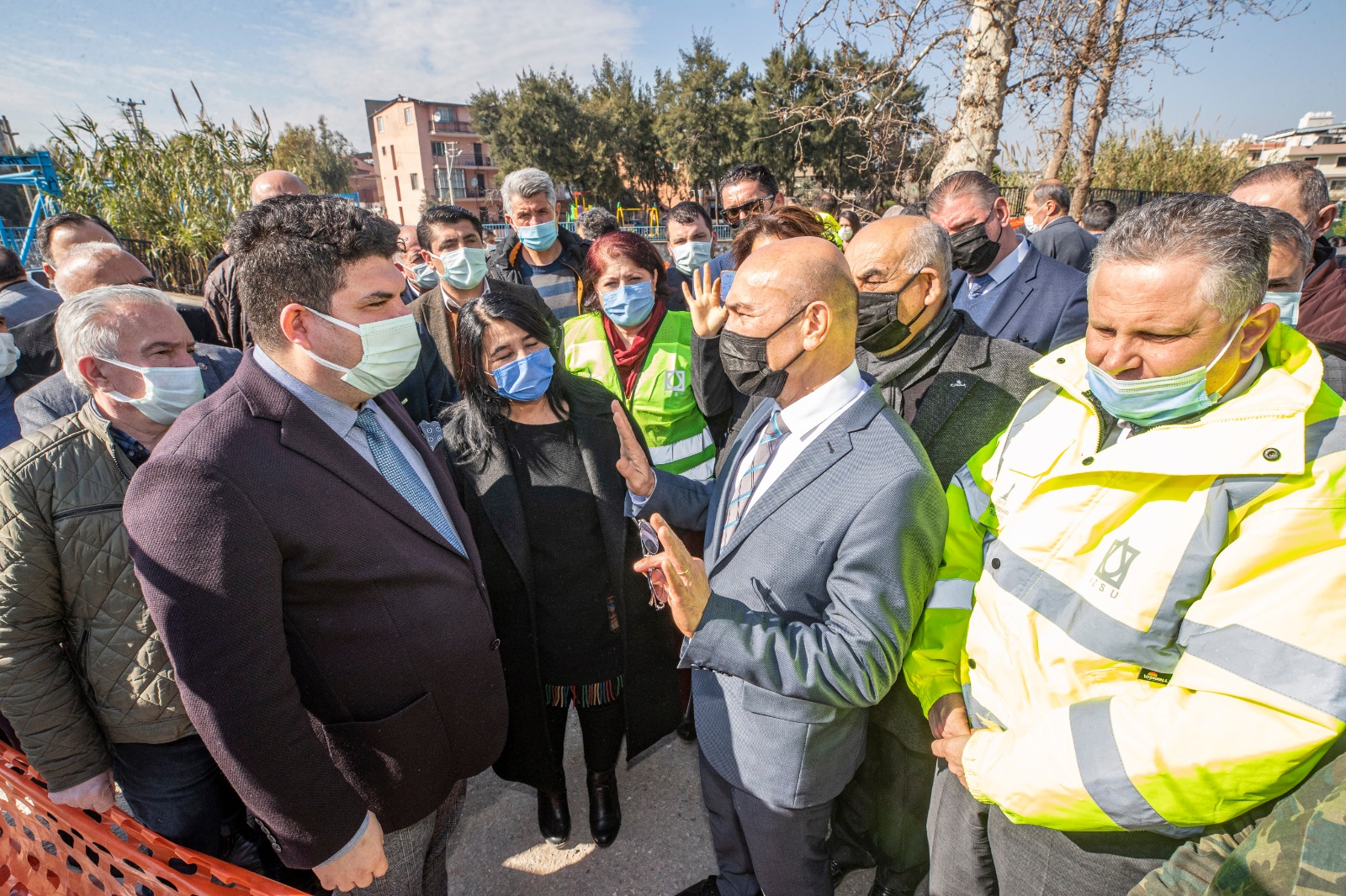 Başkan Soyer, küresel ısınma nedeniyle yağış rejiminin de değiştiğine vurgu yaparak “Bir ayda düşmesi gereken yağmur bir günde düşünce, bu durum büyük bir felakete dönüştü. Ama bu ders çıkardığımız bir şey. Demek ki bizim kentin alt yapısını buna da hazırlıklı hale getirmemiz lazım. Yaptığımız çalışma bununla ilgili. Gültepe'de 17 kilometre. Burada ilk etapta 15 kilometre. En başta ortaya koyduğumuz yüzülebilir Körfez hedefine, işte bu adımlarla yaklaşıyoruz. Aynı zamanda da burada yaşayan vatandaşlarımızı, bu tür felaketlerde savunmasız ve çaresiz bırakmayacağız” dedi.