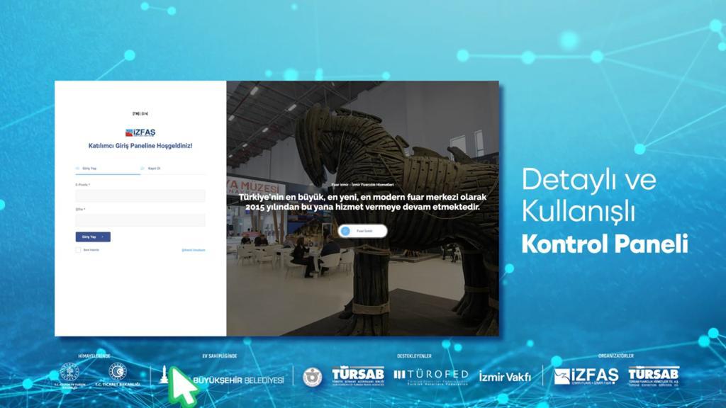Kurulduğu günden bugüne dek fuarcılıkta sektör profesyonellerine alternatif çözümler sunan İZFAŞ, Türkiye’nin sanal fuar alanı “Digital İzmir Fair” ile Türkiye’nin en büyük ve en modern fuar merkezi fuarizmir’i dijital platforma taşıdı. Sanal platform, sektörün ihtiyaçlarına cevap veren kullanıcı dostu ara yüzü ile ticari faaliyetleri değişen zaman ve mekân algısına uyarlıyor. Digital İzmir Fair kolay, esnek, güvenilir ve yenilikçi oluşuyla kullanıcılarına pek çok fırsatı aynı anda sunuyor. Kullanıcılar, ücretsiz bir şekilde kayıt olup platforma girerek katılımcı, ürün ve hizmetlere rahatlıkla erişebiliyor. Katılımcılar ise, detaylı kontrol panelleri ile kendi stantlarını oluşturup hizmet, katalog, video gibi içerikleri düzenlerken; müşteri eşleştirme sistemi ile ticari ağlarını genişletiyor.