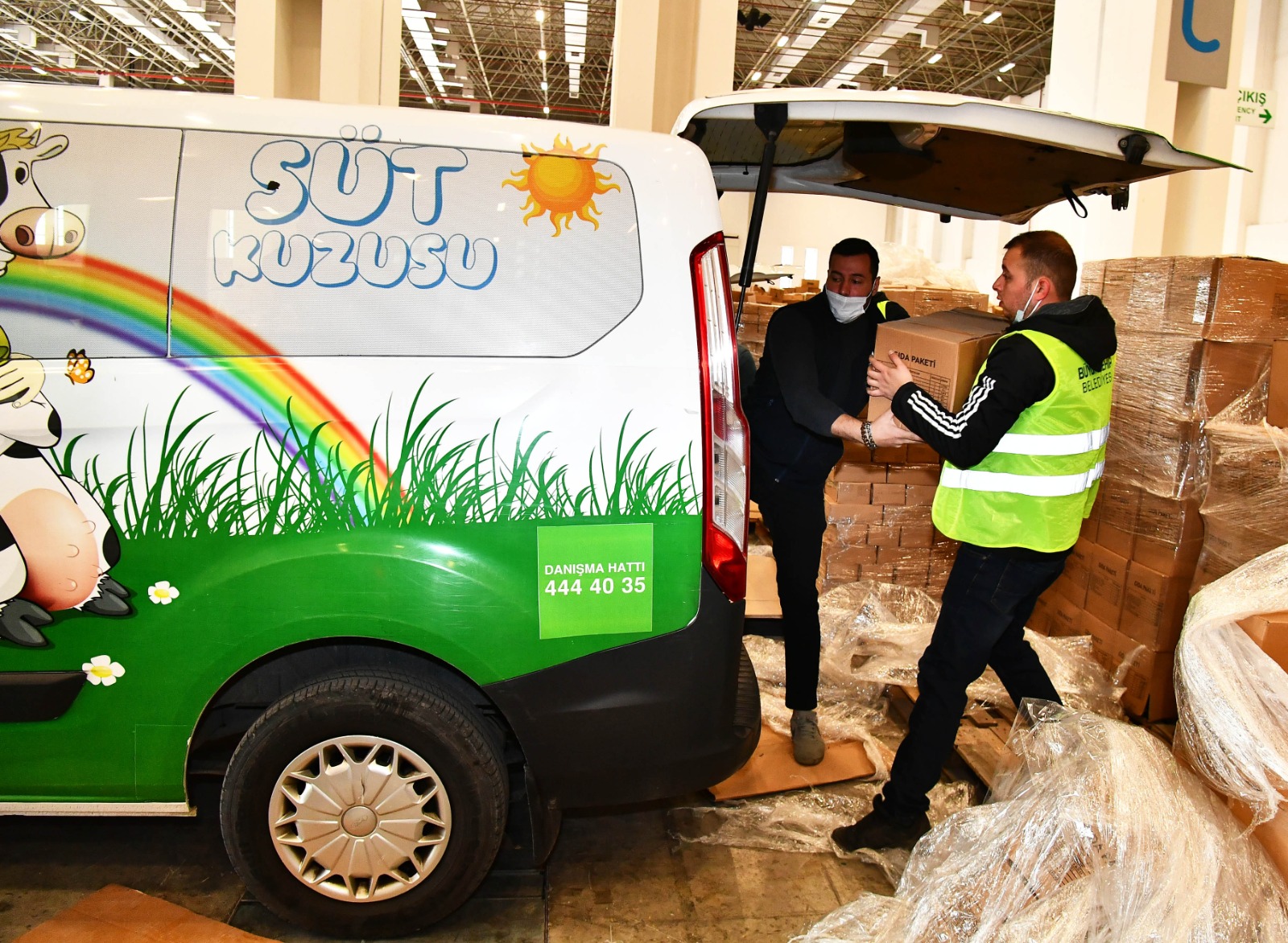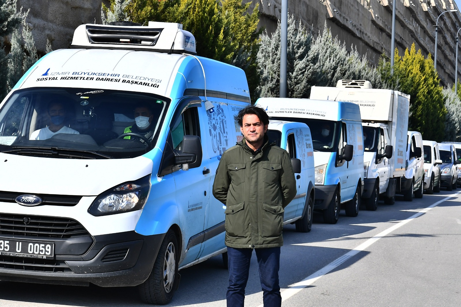 İçerisinde ayçiçek yağı, pirinç, makarna, çay, toz şeker, un ve zeytin bulunan gıda kolileri, 30 ilçenin tamamında dağıtılıyor. Metropol ilçelerde Sosyal Hizmetler Dairesi Başkanlığı, kırsal ilçelerde de İzmir Büyükşehir Belediyesi Yerel Hizmetler Şube Müdürlükleri üzerinden yardımlar yurttaşlara ulaştırılıyor.