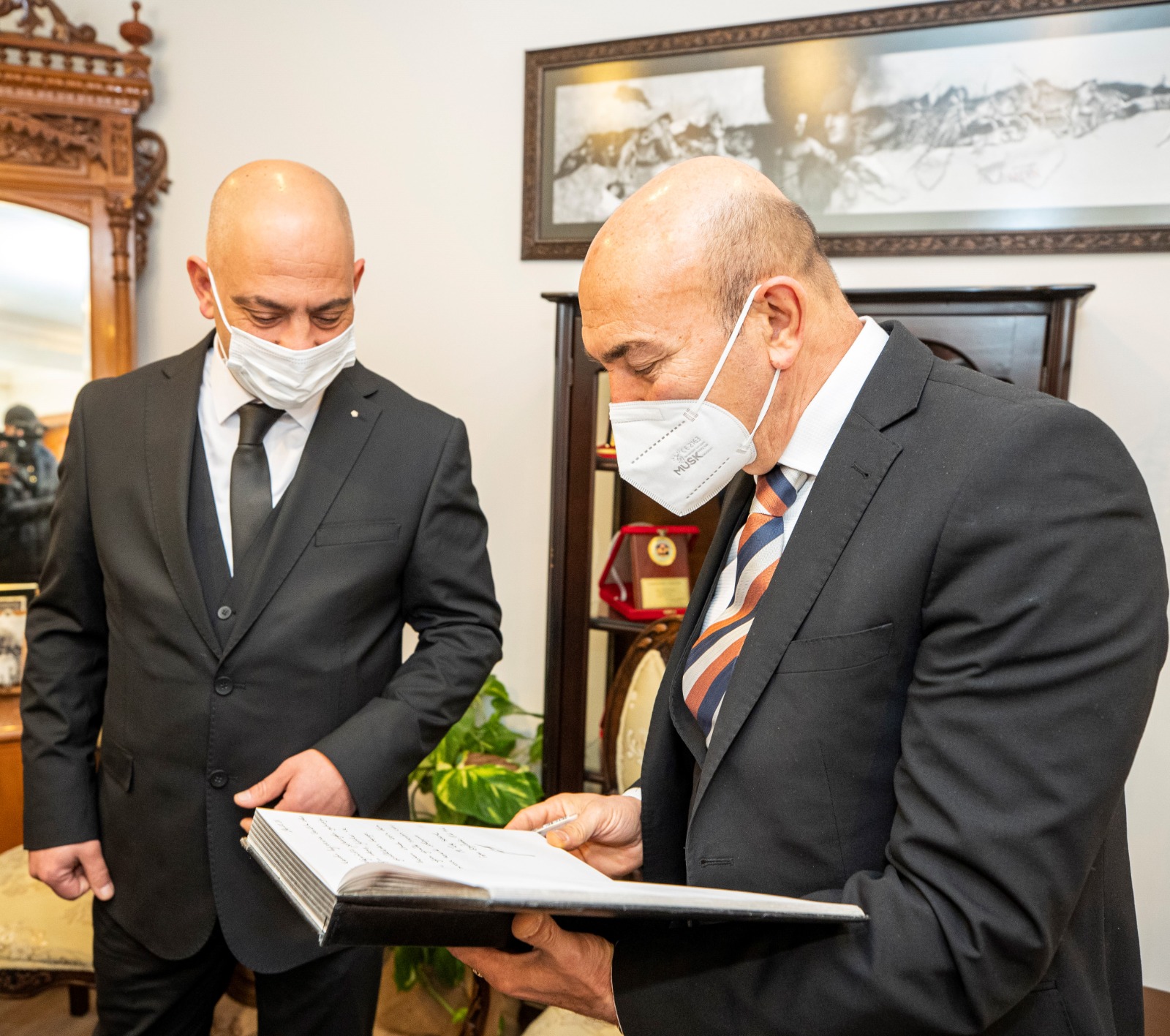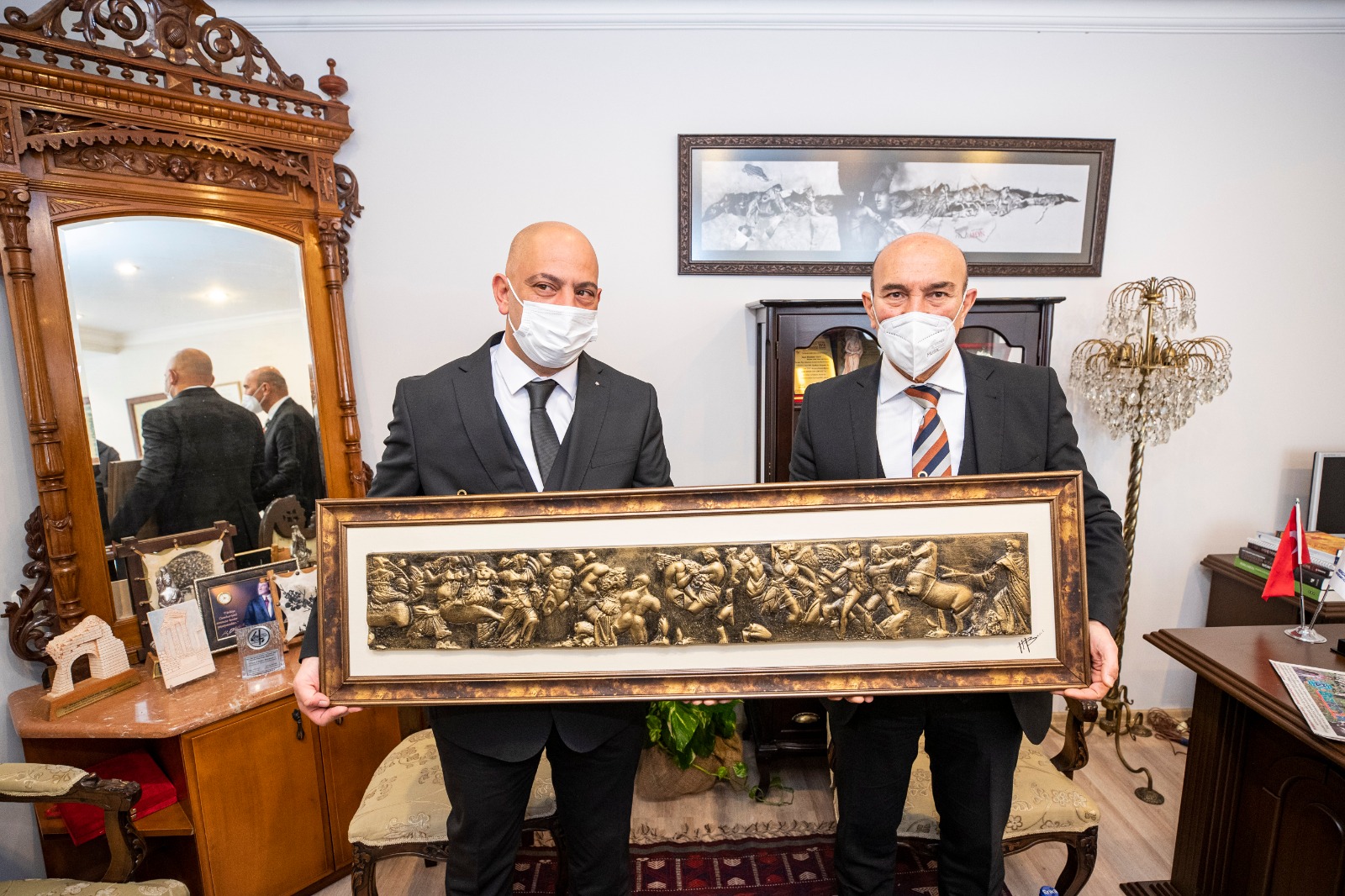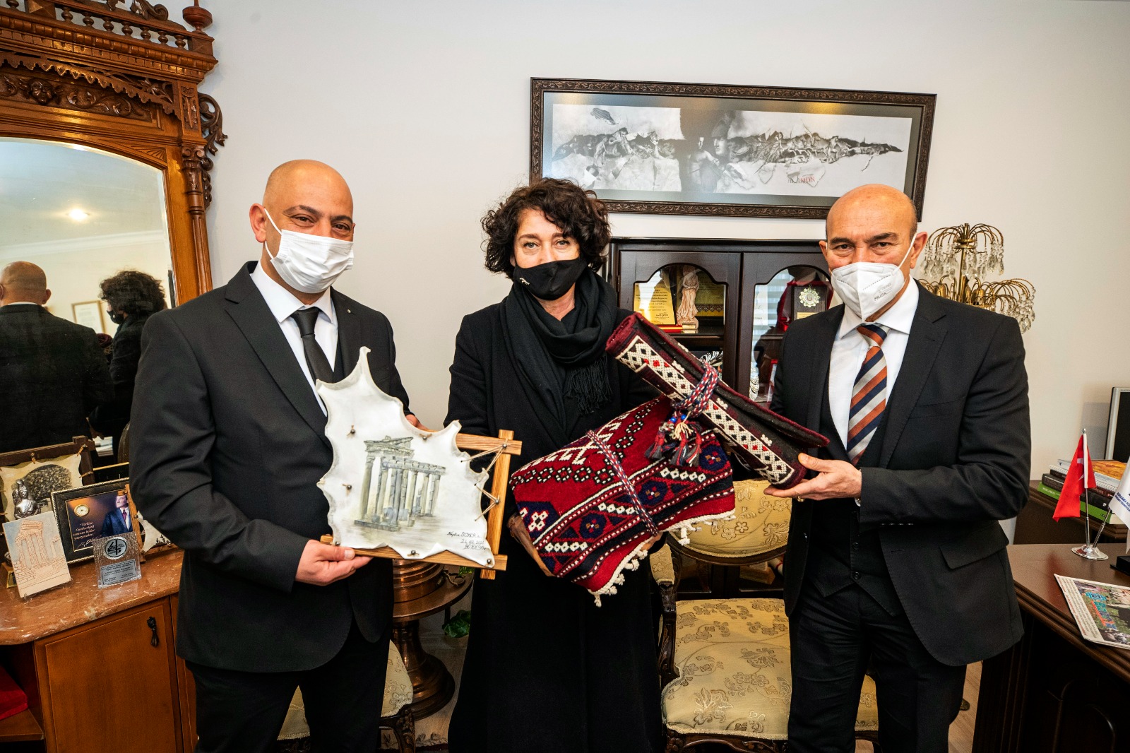 Bergama'nın tarım ve turizm alanında gelişmesi için bir dizi strateji hazırladıklarını belirten Başkan Soyer, tiyatro festivaline de mutlaka destek vereceklerini söyledi. Gönlügür, Bergama'nın insanlığa armağanı parşömenin tarihi ile ilgili de bilgi vererek parşömenden yapılan ürünleri dünyaya tanıtmak istediklerini söyledi. Soyer program kapsamında Bergama CHP İlçe Başkanı Mehmet Ecevit Canbaz ve İYİ Parti İlçe Başkanı Nuri Çiftçi'yi de ziyaret ederek, birlik ve beraberlik içinde hizmet üreterek başka bir Türkiye'nin mümkün olduğunu ilklerin kenti İzmir'den göstereceklerini belirtti.