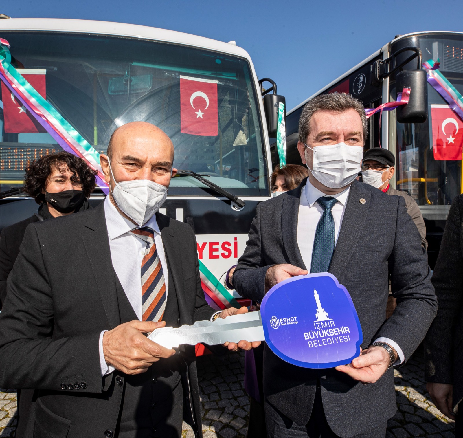 Başkan Soyer, ESHOT Genel Müdürlüğü tarafından tamamen yenilenen iki adet otobüsün Bergama Belediyesi'ne teslim törenine de katıldı. Törene İzmir Büyükşehir Belediye Başkanı Tunç Soyer'in eşi ve İzmir Köy Koop Birlik Başkanı Neptün Soyer, Bergama Belediye Başkanı Hakan Koştu, Dikili Belediye Başkanı Adil Kırgöz, İzmir Büyükşehir Belediyesi Başkan Vekili Mustafa Özuslu, CHP İlçe Başkanı Mehmet Ecevit Canbaz, İYİ Parti İlçe Başkanı Nuri Çiftçi, ESHOT Genel Müdürü Erhan Bey, meclis üyeleri ve muhtarlar katıldı.