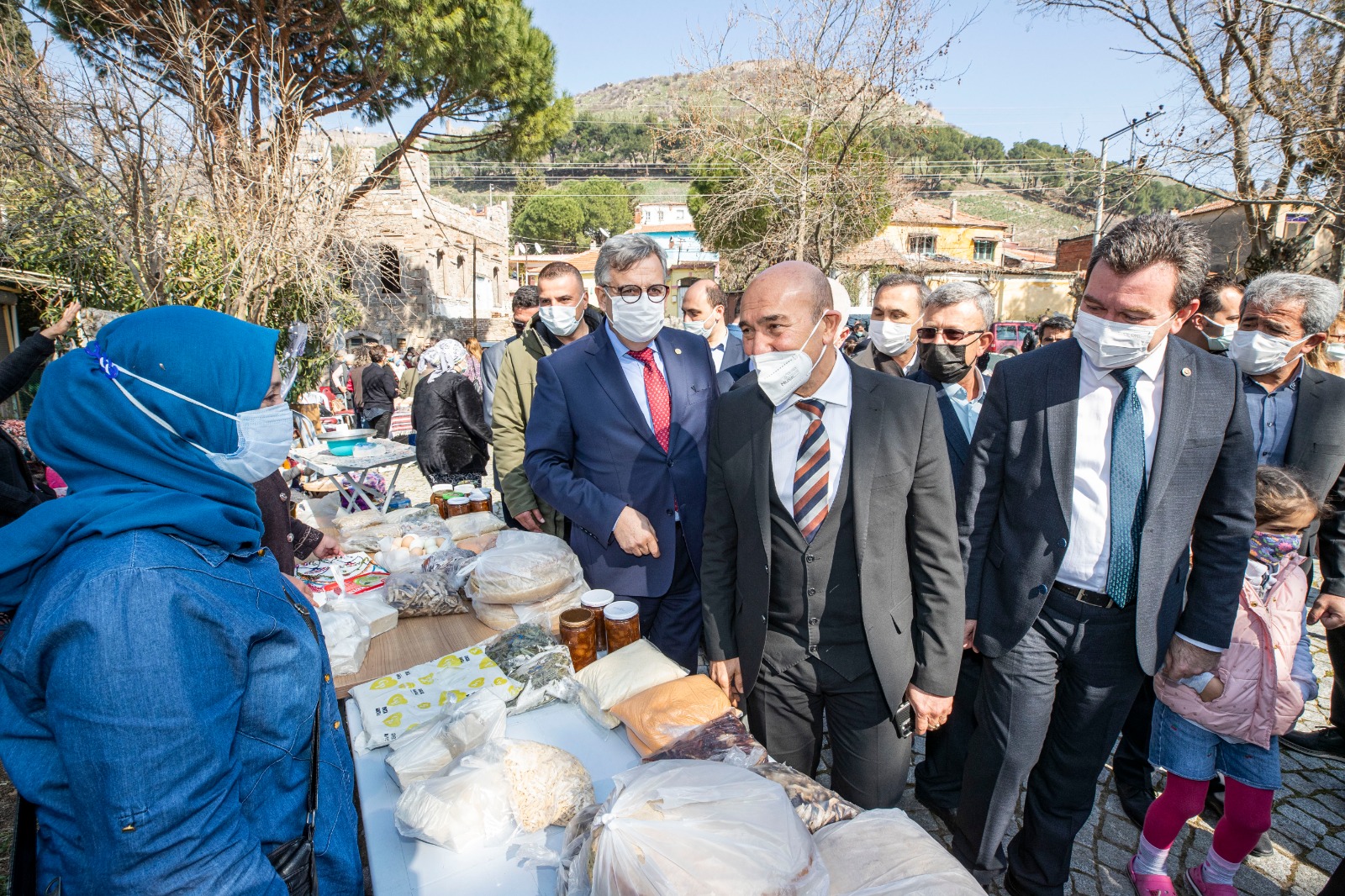 Kale Mahallesi Domuz Alanı mevkiinde üretici kadınlarla bir araya gelen Başkan Soyer, bugün açılan kadın üretici pazarını gezdi. Başkan Soyer ilkini Seferihisar Sığacık’ta açtıkları üretici pazarlarının Bergama’ya kadar uzanmasının mutluluğunu yaşadıklarını belirterek, “Kadınların göz nuru, alın teriyle ürettikleri sayesinde aile ekonomisine katkı koyduğu ortamları oluşturuyoruz. Her birinin ellerinden, gözlerinden öpüyorum. Onların emeğine sonuna kadar sahip çıkacağız” dedi.