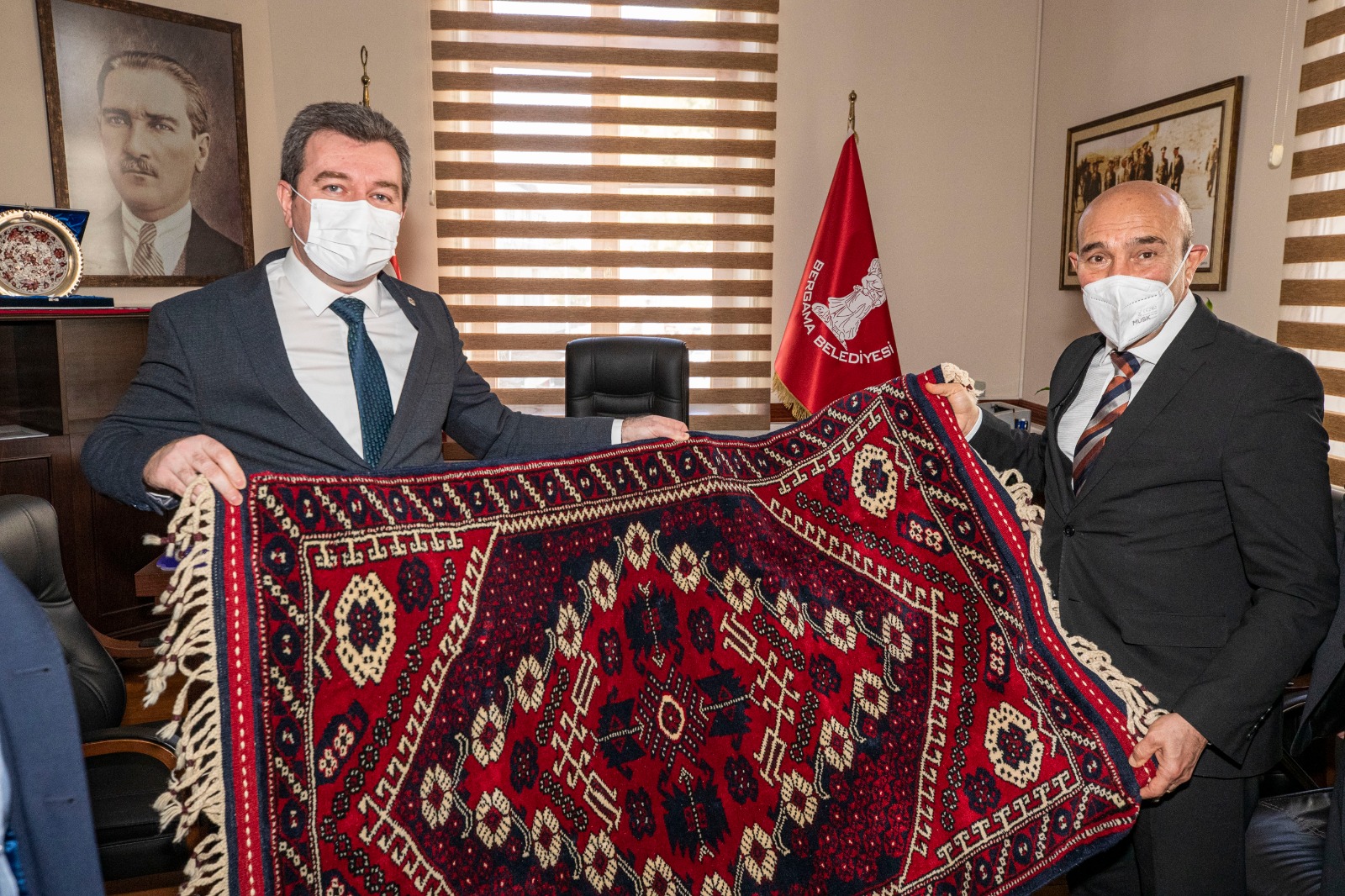 Bergama’nın olağanüstü bir coğrafyaya ve tarihsel hazineye ev sahipliği yaptığına da değinen Soyer, “Burada Kozak gibi agro turizmin dünyadaki en güzel örneklerinden biri olma kapasitesine sahip olağanüstü bir yayla var. Yine muazzam tarihi, arkeolojik hazine var. Buna rağmen turizmden aldığı pay çok düşük. Bunun değişmesi lazım. Bu hazineyi dünyanın göreceği noktaya taşıyamazsak gideceğimiz bir yer yok. Yani burada hem tarımsal üretimi başka noktaya taşımamız hem de turizmde hak ettiğimiz yere gelmek için kafa yormamız lazım. Bunlar sektör meselesi değil, bunlar memleket meselesi. Bunların önünü açarsak tüm sektörlerin önünü açmış olacağız. Nitekim yarın Zeus Sunağı’nın evine dönmesiyle ilgili başlattığımız sürece ilişkin toplantı yapacağız. Zeus Sunağı’nın gelip gelmemesi meselesinden öte, biz orada Bergama’nın tanıtımı ile ilgili önemli bir süreci başlatıyoruz. Bergama’yı gündemde tutarak dünya kamuoyunun konuşmasını sağlamak için düğmeye basıyoruz. Öte yandan Bergama’nın turizmdeki rolü ile ilgili birçok çalışmamız var” dedi. İlçedeki meslek odalarının yöneticilerinin taleplerini tek tek dinleyerek not alan Soyer, üretim yolları başta olmak üzere eksiklikleri hızla tamamlayacaklarını belirtti.