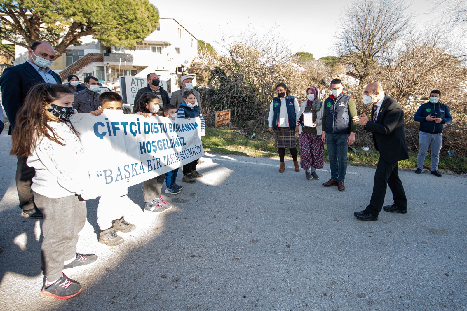 Çamavlu Köyü'ne giden Başkan Soyer'i çocuklar ellerinde "Çiftçi Dostu Başkan Hoşgeldin. Başka Bir Tarım Mümkün" yazan pankartla karşıladı. Başkan Soyer, Demircidere Köyü'nde Tahtacı kültürünü yaşatan özel etnografya müzesini ziyaret etti. Japonya ve Amerika'dan turist alan Göbeller Köyü'nde muhtar ve bölge halkıyla sohbet eden Başkan Soyer, 20 evde yapılan ev pansiyonculuğunun pandemi sonrası sürdürülmesi ve geliştirilmesi için destek vereceklerini söyledi. Soyer, "Evlerinizin turizm acenteleri ile buluşmasını sağlayacağız. İlk etapta 20 evle başlıyoruz" dedi.