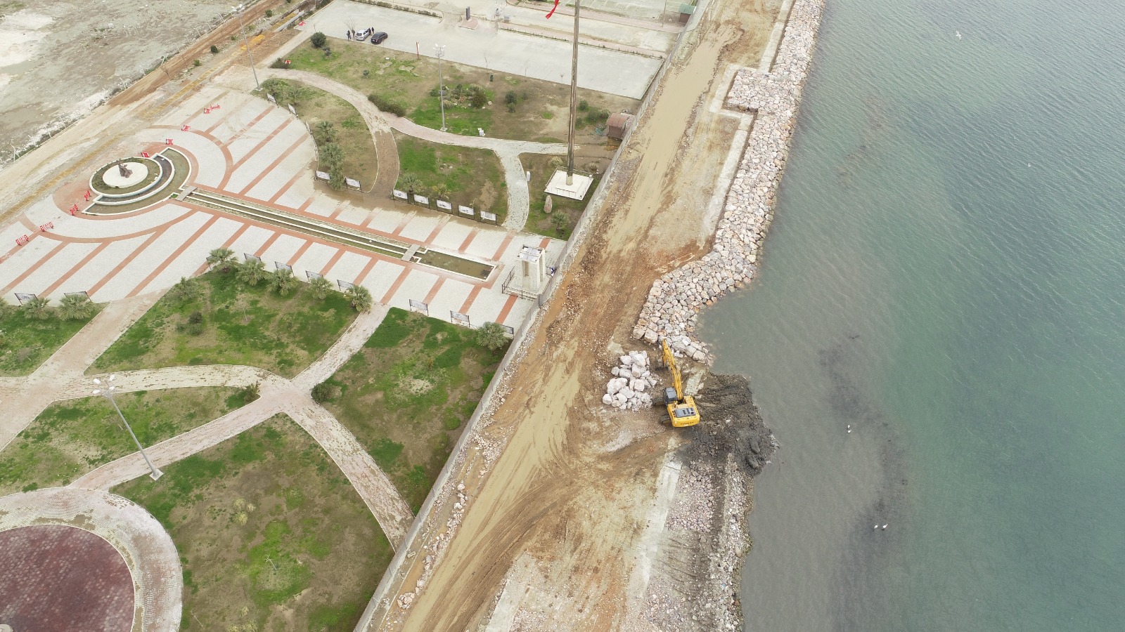 Ön kısımda yeniden imal edilen kaya tahkimat dalga etkisinden alanı koruyacak. Yapılan kaya tahkimatı deniz seviyesinden yaklaşık 1,5 metre yüksekte olacak. Ayrıca yerleşim bölgelerindeki yağmur suyunu toplamak üzere bin 750 metre uzunluğunda yağmur suyu hattının 540 metresi tamamlandı. Toplanan sular mevcut terfi merkezindeki pompalar aracılığıyla denize verilecek. Proje kapsamında yurttaşların denizle bağını güçlendirmek için 55 metre uzunluğunda deniz merdiveni ve çocukların kuşları tanıyacakları su içi sınıfı olacak. Bu alan sanatsal etkinlikler için de kullanılacak. Çalışmalar 38,4 milyon liraya mal olacak.