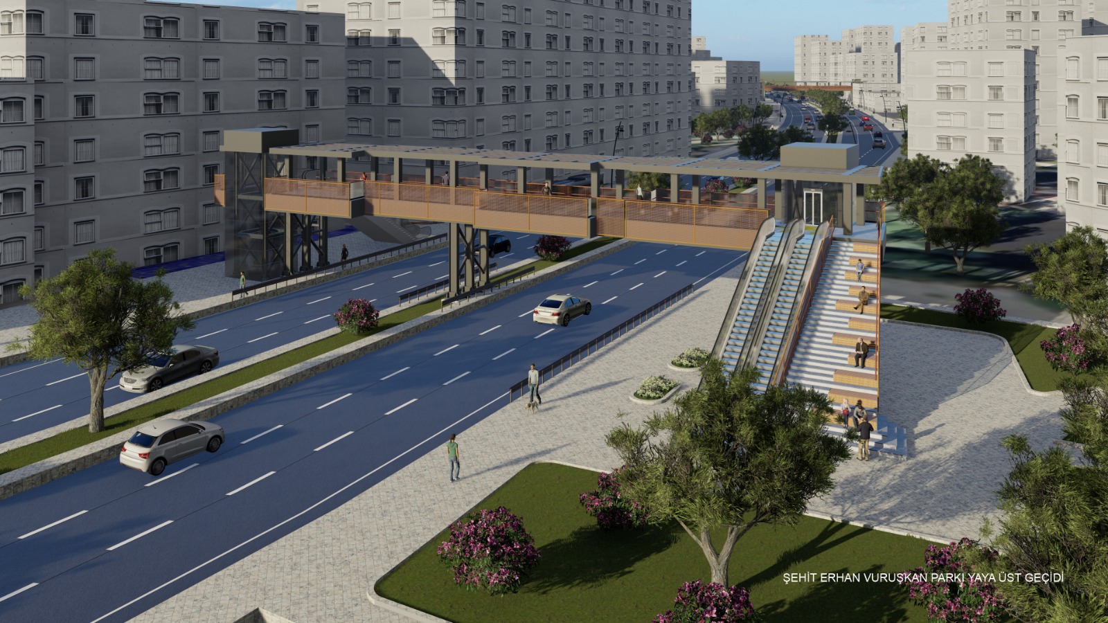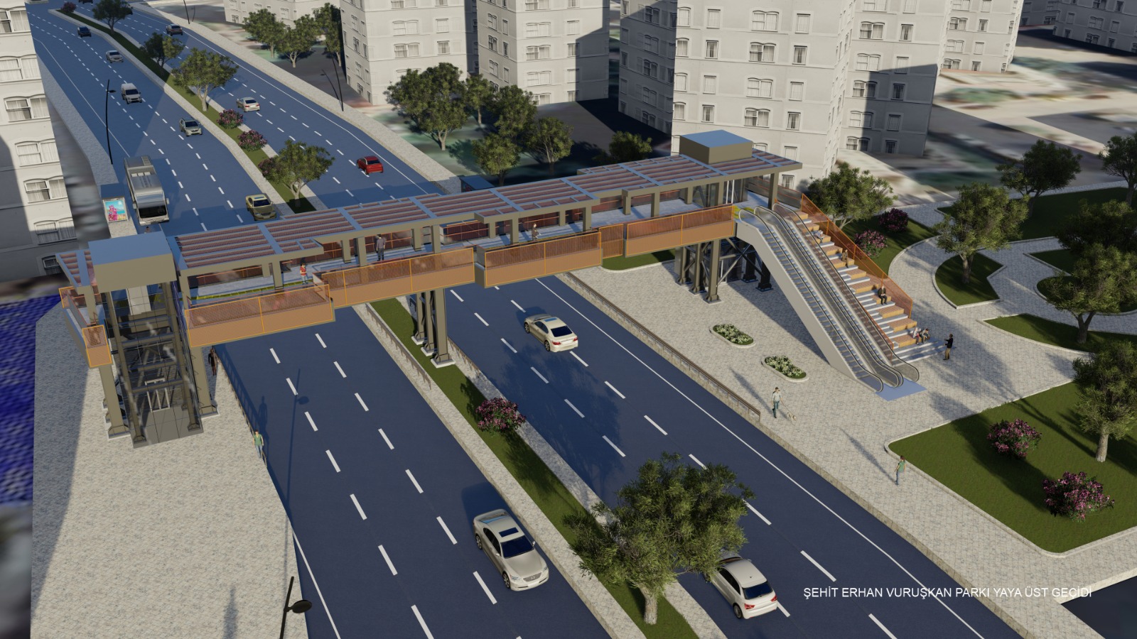 Engelli, yaşlı ve bisikletlilerin kullanımına uygun yürüyen merdivenli ve asansörlü her iki yaya üst geçidinde konforlu bir kullanım sağlanması amacıyla üst örtü de planlandı. Gölgelikli yeni yaya üst geçitlerinin pazaryeri ve park tarafındaki merdiven bölümlerinde kentlilerin dinlenmesi için amfiler tasarlandı. Her iki üst geçidi de yayaların merdivenden çıkmaya başladığı andan itibaren çevreyi izleyebileceği şekilde planlandı.