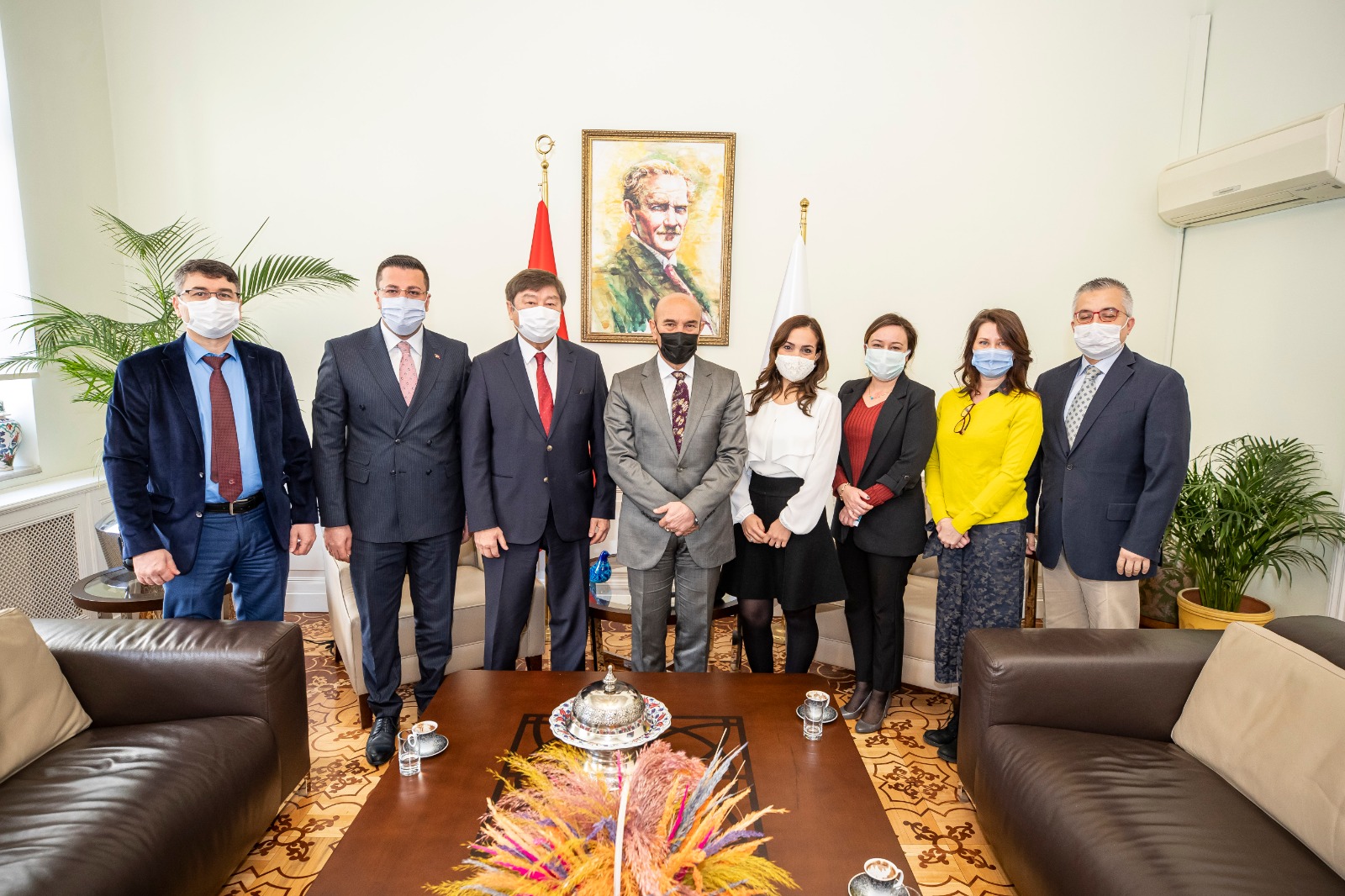 Uluslararası Türk Kültürü Teşkilatı (TÜRKSOY) Genel Sekreteri Düsen Kaseinov, İzmir Büyükşehir Belediye Başkanı Tunç Soyer’i makamında ziyaret etti. İkili ilişkilerin geliştirilmesi amacıyla görüş alışverişinde bulunulan ziyarette İzmir Büyükşehir Belediye Başkanı Tunç Soyer, “Bütün bu krizler gösterdi ki; dayanışma insanların birbiriyle daha çok destek verecek şekilde bir araya gelmesi, krizlerin hastalıkların tedavisini de kolaylaştırıyor, hasarı azaltıyor. Dayanışmayı gerçekleştirecek ortak paydalar bulmak lazım. Kültür, sanat en güçlü ortaklardan. Onun üzerinden yol almak çok kıymetli” dedi.