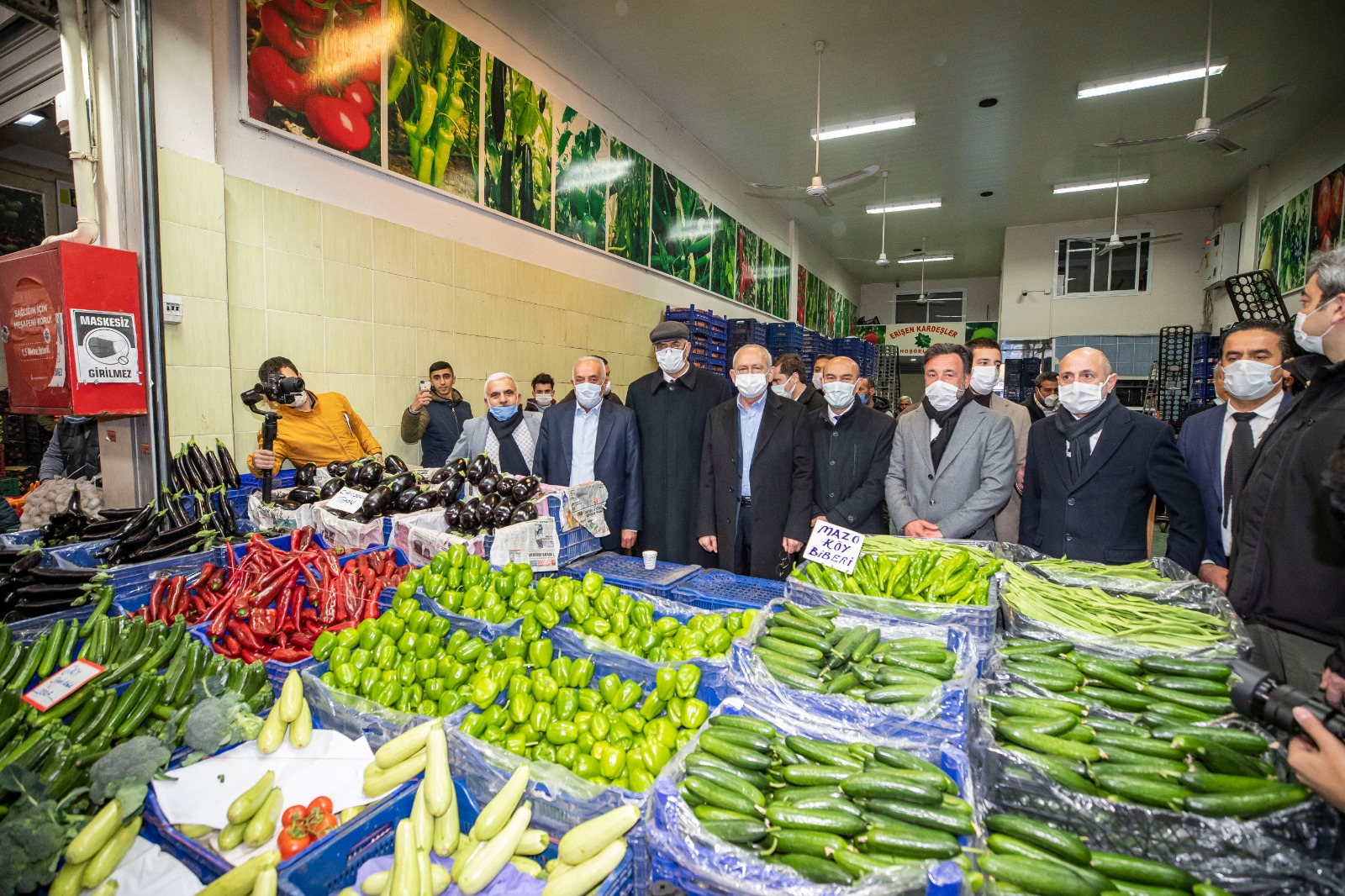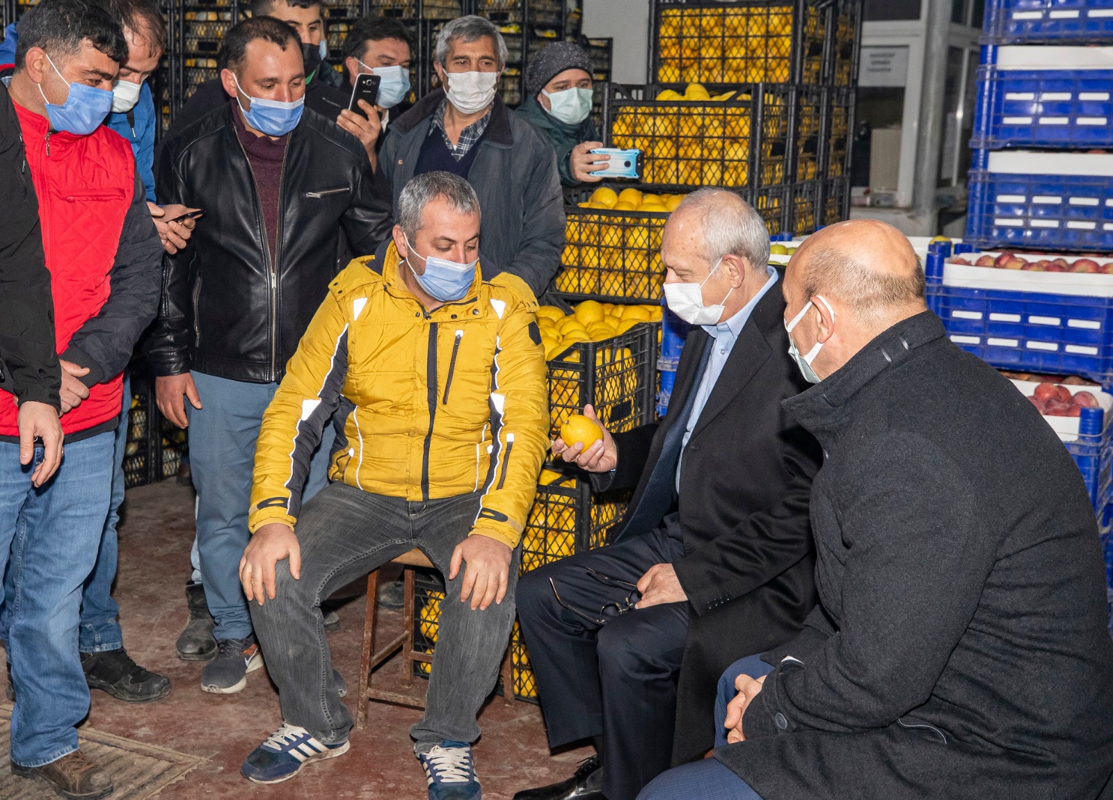 Kılıçdaroğlu esnaf ziyaretinin ardından, İzmir Sebze ve Meyve Komisyoncular Derneği yöneticileri ile bir toplantı yaptı.