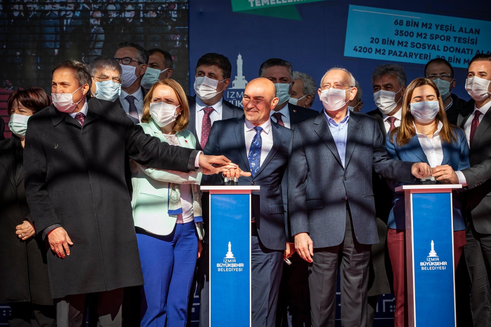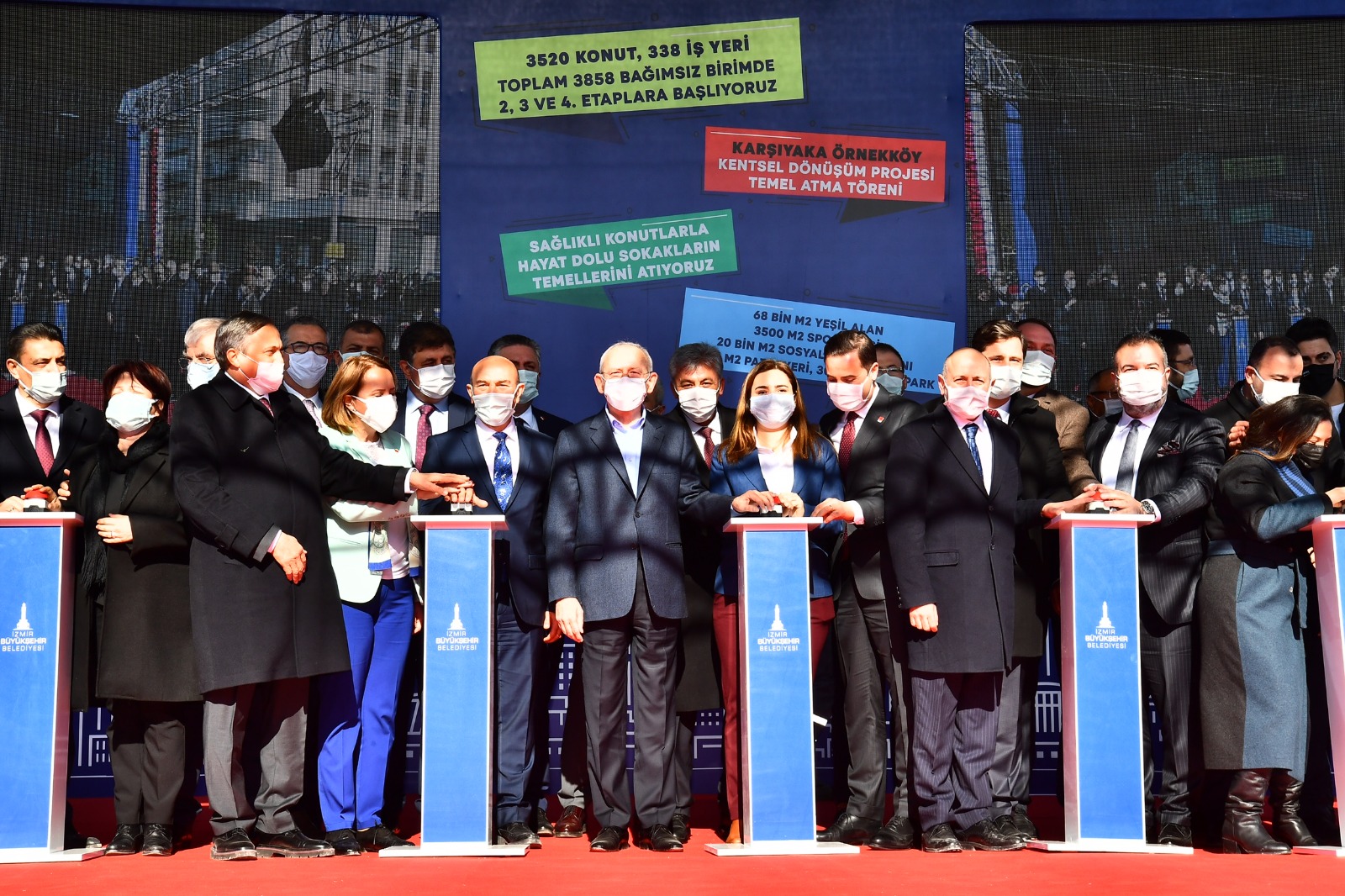 İzmir Büyükşehir Belediyesi, Karşıyaka Örnekköy’de devam eden kentsel dönüşüm çalışmalarının ikinci etabının temelini CHP Genel Başkanı Kemal Kılıçdaroğlu'nun katıldığı törenle attı. 18 hektarlık kentsel dönüşüm alanında birinci etapta 130 konut ve 13 işyerini hak sahiplerine teslim eden İzmir Büyükşehir Belediyesi, ikinci etap kapsamında 170 konut ve 20 işyerini yeniden inşa edecek.