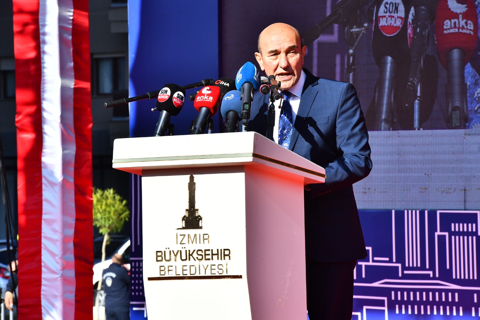Törende konuşan İzmir Büyükşehir Belediye Başkanı Tunç Soyer, belediyenin kentteki riskli konut alanlarının, etaplar halinde güvenli hale getirmeye devam ettiklerini söyledi. İzmir’de dönüşümü gerçekleştirmek amacıyla “dönüşümün uzlaşma esaslı olması”, “dönüşümün yerinde gerçekleştirilmesi” ve “dönüşümün İzmir Büyükşehir Belediyesi’nin güvencesi ve garantörlüğünde gerçekleşmesi” olmak üzere üç temel ilkelerinin bulunduğunu belirten Başkan Tunç Soyer, yürütülen kentsel dönüşüm çalışmaları kapsamında 6 bölgede şimdiye kadar hak sahiplerinden 345 bin metrekare tapu devri aldıklarını söyledi. Başkan Soyer, “Yaklaşık 1000 bağımsız bölümün anahtar teslimini yaparak mülkiyet tapusu ile hak sahiplerine teslim ettik. 2 bin 200 bağımsız birimin inşaatını başlattık. İzbeton ile 1000 bağımsız birimin yapımı için protokol imzaladık. 1218 bağımsız birimin kat karşılığı ihalesini yaptık. Yaklaşık 4 bin 600 bağımsız bölümün de tüm uzlaşma, devir, tapu ve imar uygulamalarını tamamlayarak yapım ihalesine hazır hale getirdik” dedi.
