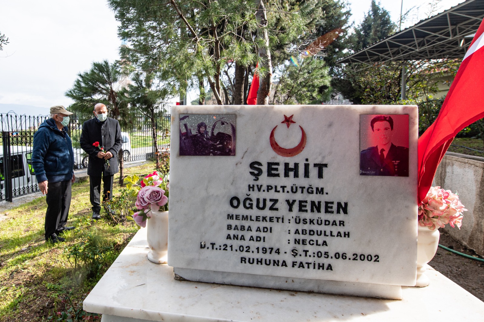 Törende İzmir Valisi Yavuz Selim Köşger, şehitlik defterini imzaladı. İzmir İl Müftü Yardımcısı Rahmi Yiğit'in şehitler için dua okumasının ardından, Kadifekale Şehitliği'ndeki kabirlere karanfil bırakıldı.
