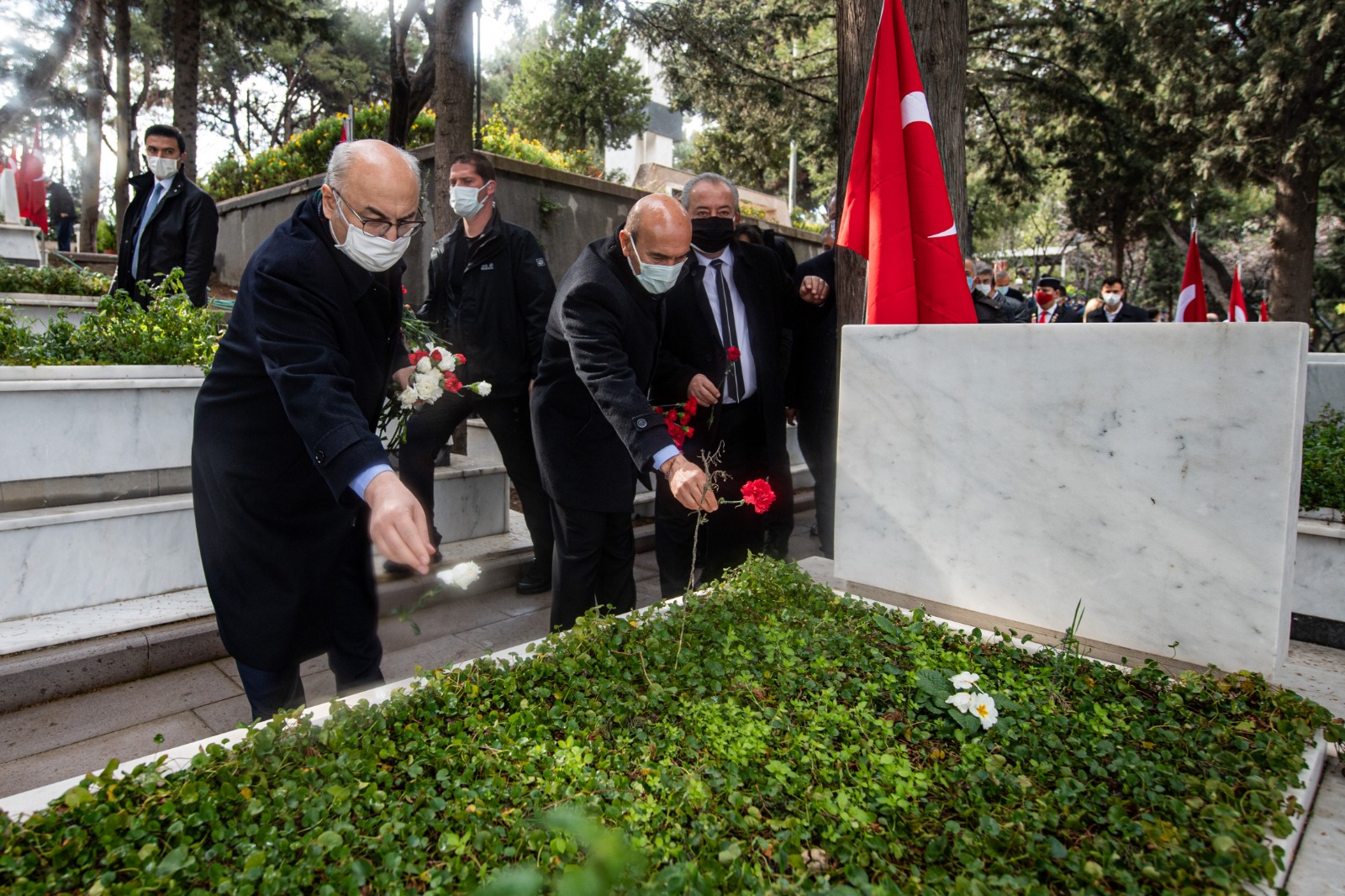 İzmir Büyükşehir Belediye Başkanı Tunç Soyer, 18 Mart Çanakkale Zaferi ve Şehitleri Anma Günü nedeniyle Kadifekale Şehitliği'nde düzenlenen resmi törene katıldı.