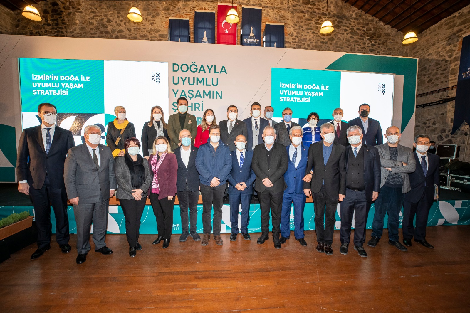 İzmir'in Doğayla Uyumlu Yaşam Stratejisi tanıtım toplantısına Dışişleri Bakanlığı İzmir Temsilcisi Büyükelçi Naciye Gökçen Kaya, Turizm İl Müdürü Murat Karaçanta, CHP İzmir Milletvekili Murat Bakan, CHP PM üyesi Rıfat Nalbantoğlu, CHP İl Başkanı Deniz Yücel, İzmir Büyükşehir Belediyesi Başkan Vekili Mustafa Özuslu, İzmir Büyükşehir Belediyesi Genel Sekreteri Dr. Buğra Gökçe, Türkiye Belediyeler Birliği Genel Sekreteri Doç. Dr. Birol Ekici, Dikili Belediye Başkanı Adil Kırgöz, Karaburun Belediye Başkanı İlkay Girgin Erdoğan, Konak Belediye Başkanı Abdül Batur, Narlıdere Belediye Başkanı Ali Engin, İzmir Büyükşehir Belediyesi İyi Parti Grup Başkan Vekili Kemal Sevinç, meclis üyeleri ve bürokratlar katıldı.