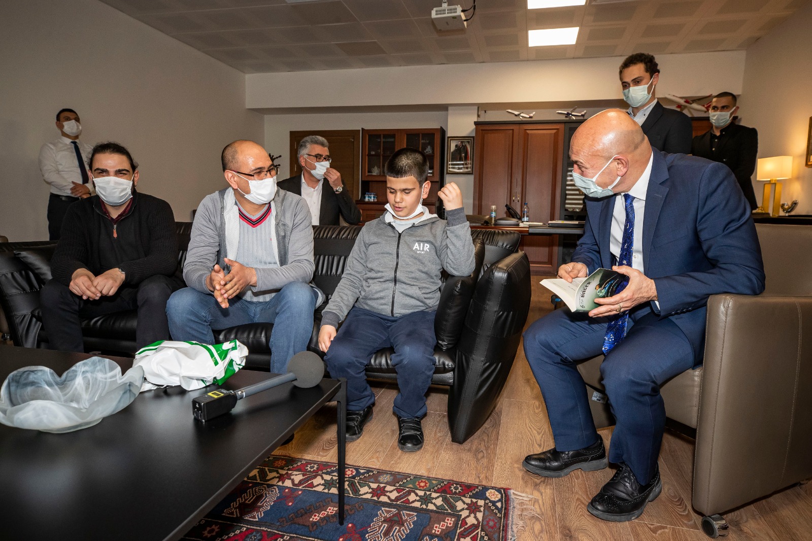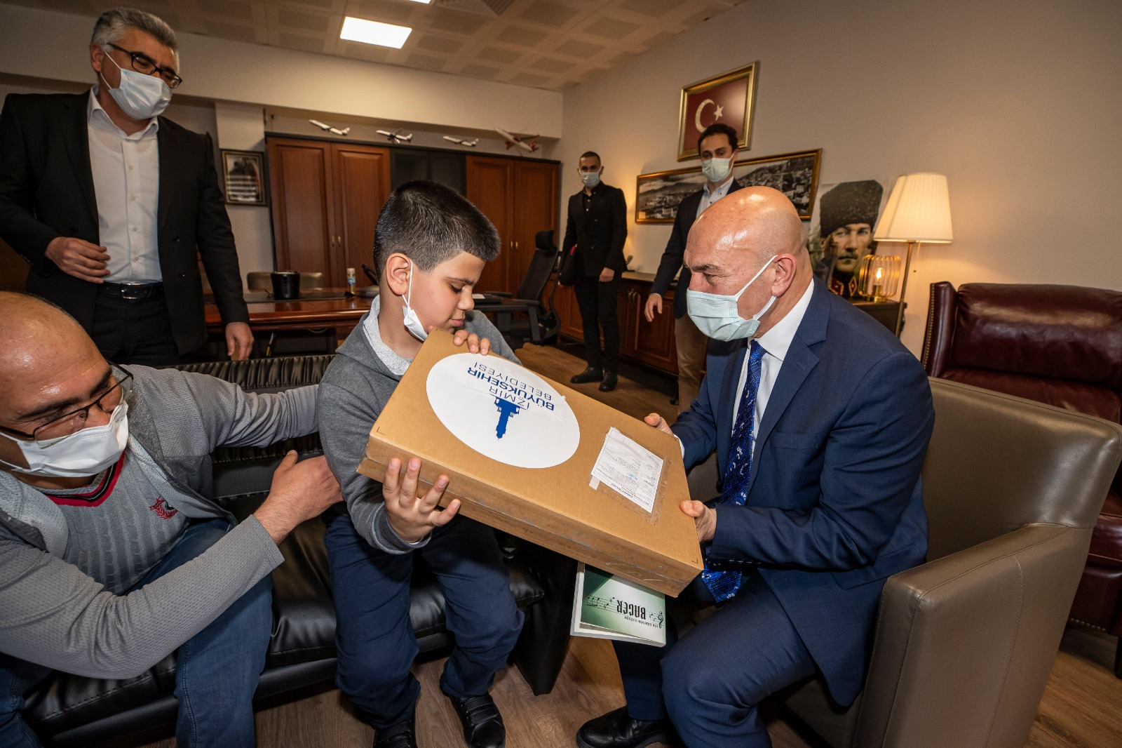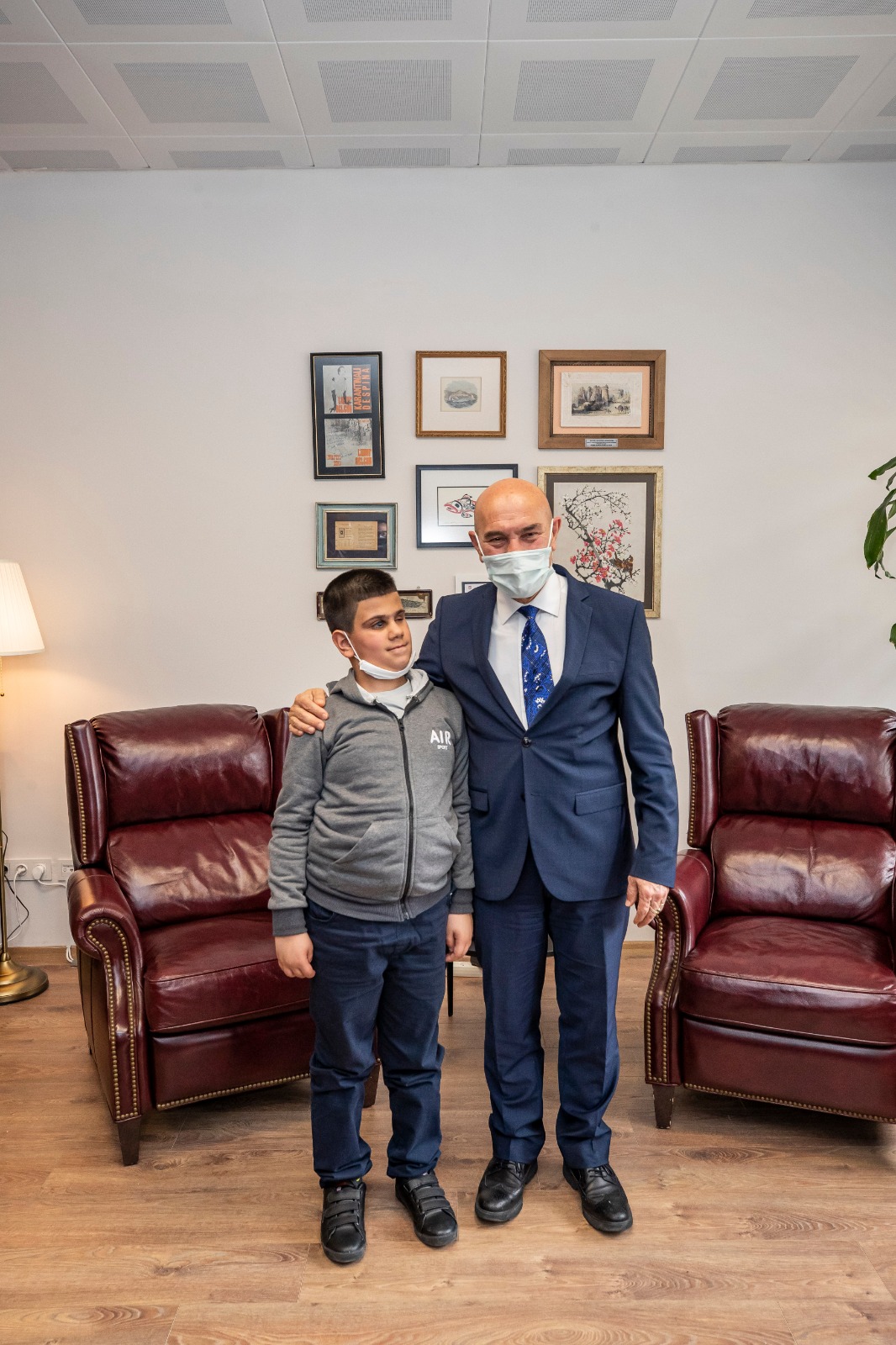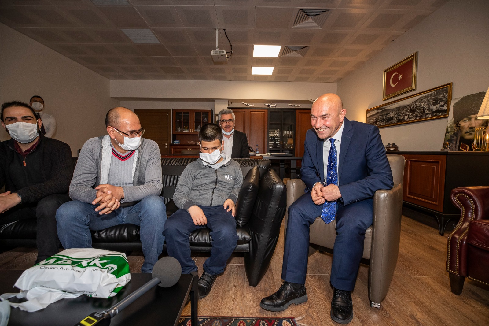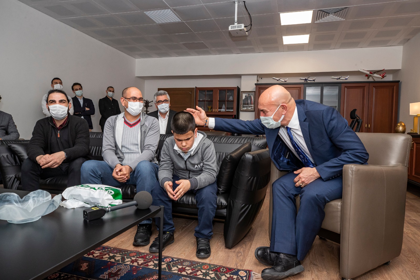 Kusursuz kulağa (absolut kulak) sahip doğuştan görme engelli Bager Çalışcı, İzmir Büyükşehir Belediye Başkanı Tunç Soyer'i makamında ziyaret etti. 9 yaşındaki Bager’e, babası Mehmet Çalışcı ve müzik öğretmeni Caner Keser eşlik etti.