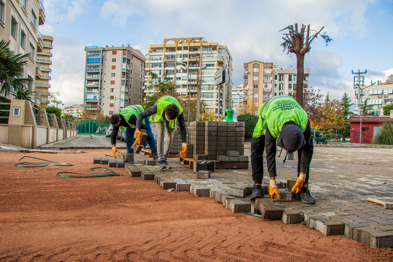 İZBETON, asfalt ve sathi kaplamanın yanı sıra, şehir içi sokaklara, caddelere ve köylere uygulanan kilit parke döşemeleri için de yoğun mesai harcadı.