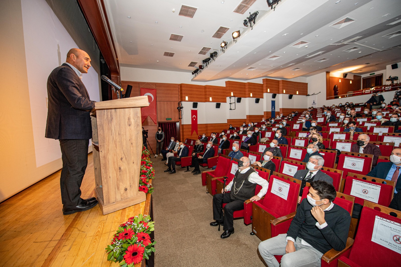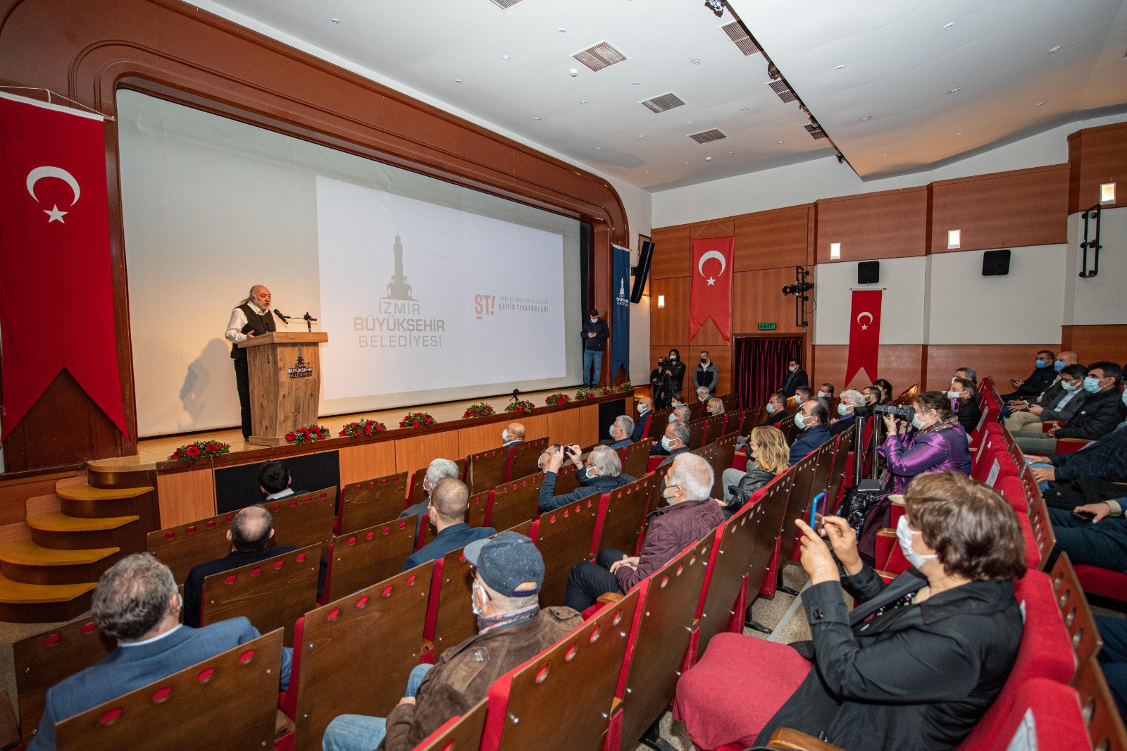 Dünya Tiyatro Günü'nün pandemi nedeniyle seyirciden uzak ve buruk kutlandığını belirten Başkan Tunç Soyer, “Heyecanımız çok büyük. Bugünlerin geride kalacağını biliyoruz. Biriktirdiğimiz heyecan ve yepyeni hikayelerle yeniden birlikte olacağımızın farkındayız. Dionysos şenliklerinden bugüne asırlardır varlığını sürdüren tiyatronun, tüm güzelliklerine yeniden birlikte tanık olacağız. Kültür ve sanatın kamu gücüyle desteklenmesinin ne kadar elzem olduğunu, son yıllarda çok daha iyi görme şansımız oldu. İzmir’de de geçmişteki girişimlere rağmen tiyatro konusunda ciddi bir eksiklik vardı. Geçmişte Büyükşehir Belediyesi’nin çabalarıyla gerçekleşen girişimler, çeşitli sebeplerden ötürü üretim hayatını sürdürememiştir. En son 1989 yılında, Özdemir Nutku hocamız; İzmir Şehir Tiyatrolarını var edebilmek için Türkiye’de bir ilk olan Kamyon Tiyatrosu’nu hayata geçirmişti. Ancak ne yazık ki süreç yine sona ermişti. İşte bugün Şehir Tiyatrolarımızı, geçmişte bunun için emek veren değerli sanatçılarımızın, hocalarımızın kıymetli mirasını doğru ellere emanet ederek ve bir daha üretimi durdurulamayacak şekilde hayata geçiriyoruz” diye konuştu.