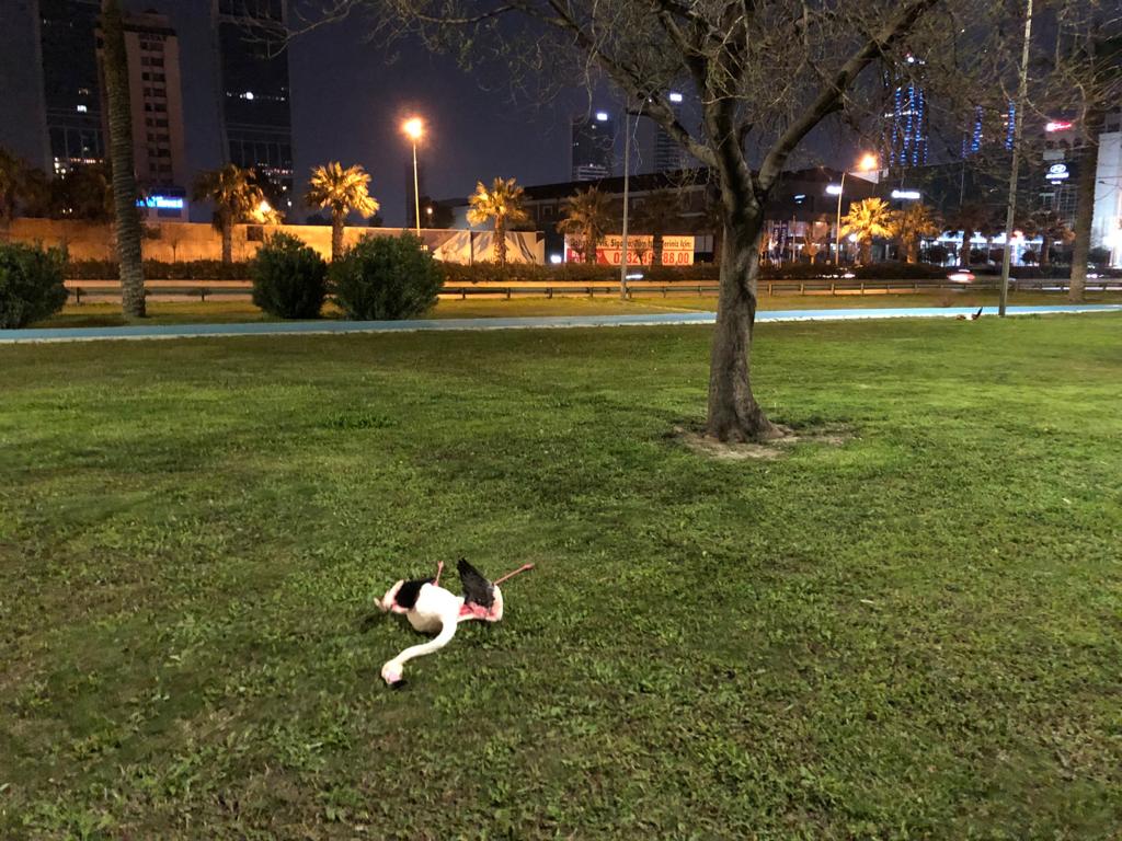 27 Mart Cumartesi günü akşam saatlerinde Bayraklı sahilindeki yeşil alanda cansız halde 9 flamingonun bulunduğu ihbarı üzerine İzmir Büyükşehir Belediyesi Doğal Yaşam Parkı bünyesinde görevli uzman personel bölgeye yönlendirildi. Alanda yapılan incelemenin ardından ölü flamingolar uygun koşullarda saklanmak üzere İzmir Doğal Yaşam Parkı’na götürüldü. Flamingolar, resmi temaslar sonrasında gerekli bilimsel inceleme ve tespitler yapılmak üzere bu konudaki yetkili kurum İzmir İl Tarım ve Orman Müdürlüğü personeli tarafından teslim alındı. Flamingoların kesin ölüm nedenlerinin Tarım ve Orman İl Müdürlüğü’nün yapacağı incelemenin ardından ortaya çıkacağı açıklandı.