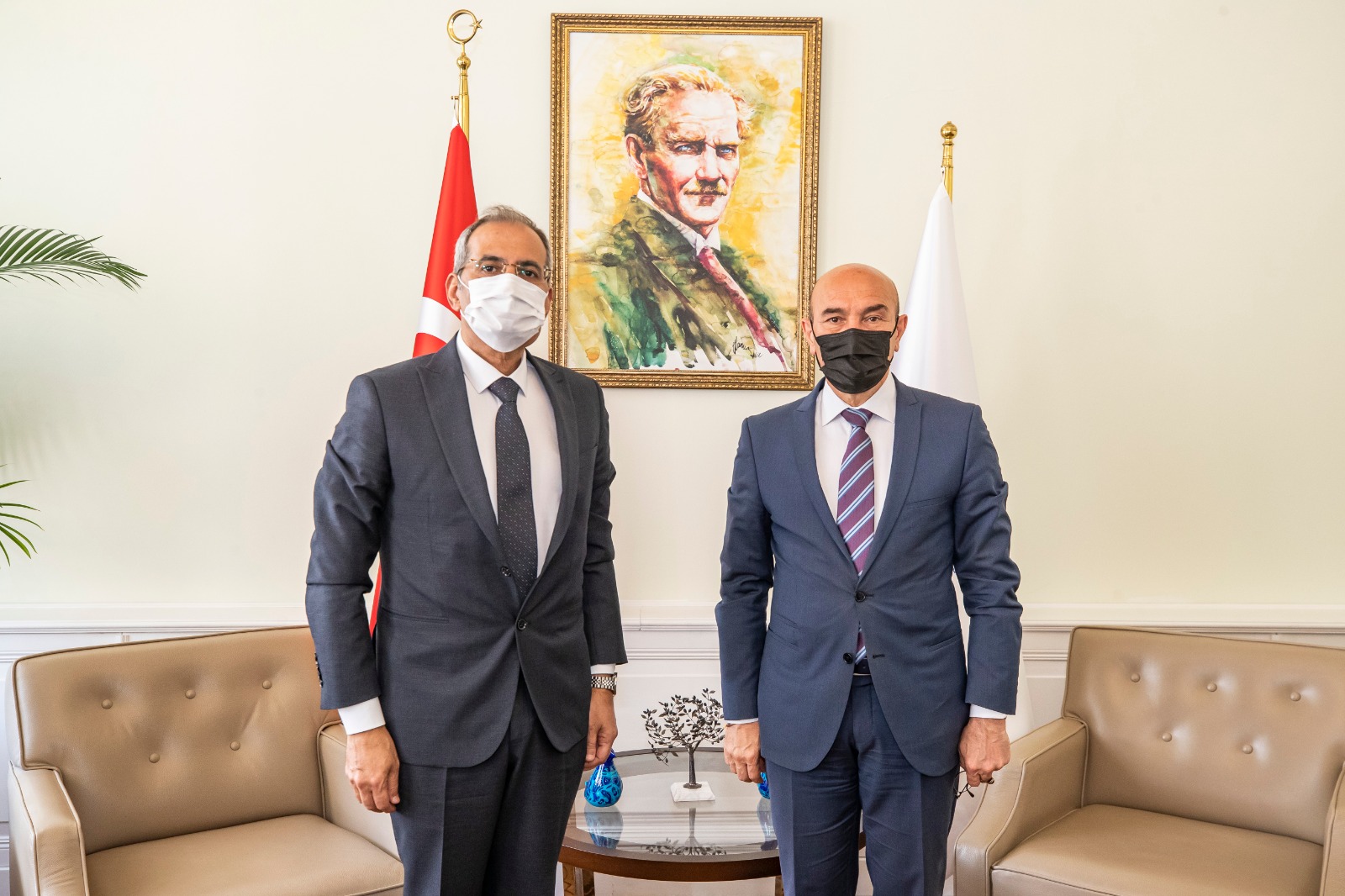 İzmir Büyükşehir Belediye Başkanı Tunç Soyer, Mersin’e bağlı Tarsus ilçesinin Belediye Başkanı Haluk Bozdoğan'ı ağırladı. Bozdoğan yanında getirdiği atalık tohumlardan bamya, sumak, nohut, kunduru buğdayı, toparlak mısır, köz barbunya, karakılçık buğdayı ve susamı Başkan Tunç Soyer'e verdi. Soyer'in yerel tohumların yok olmasını engellemek için başlattığı çalışmalara destek olmak istediğini söyleyen Haluk Bozdoğan, ilçesinde 120 kadın üyesi bulunan üretici kooperatifinin ürünlerinin de İzmir'deki Halkın Bakkalı aracılığıyla satışının yapılmasını önerdi.