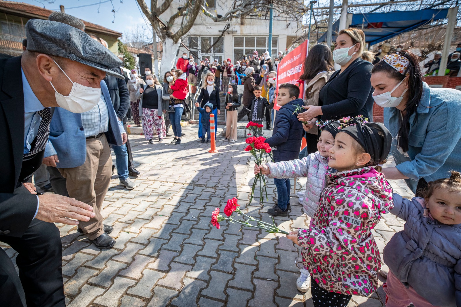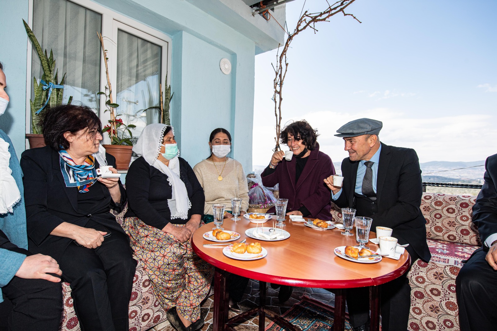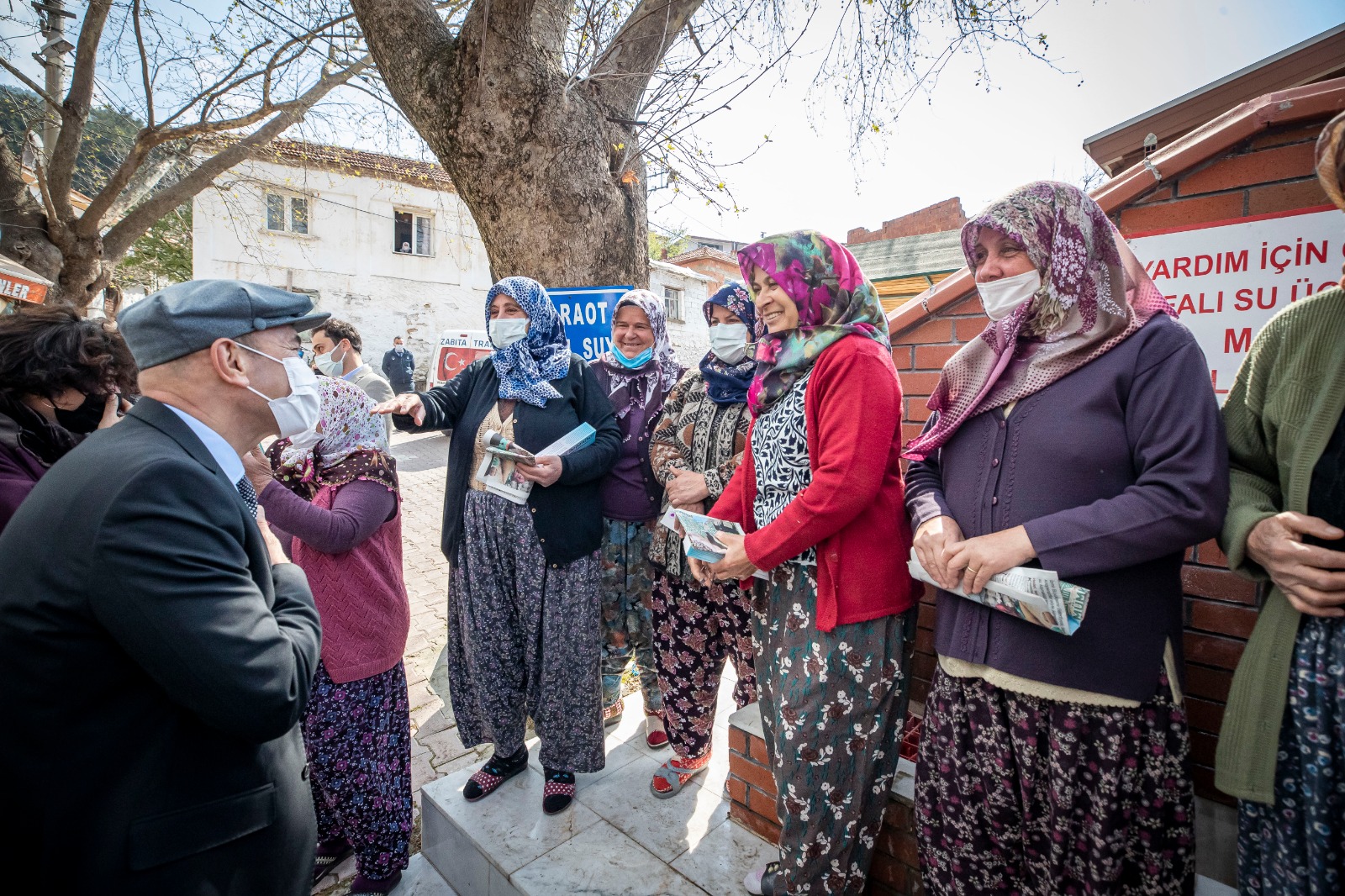 Başkan Soyer, Karakızlar köyü sakinlerini de ziyaret etti. Burada Büyükşehir tarafından 4 koyun verilen Fatma Sezer ve ailesiyle bir araya gelen Soyer, tarım ve hayvancılığın önemine değindi. Fatma Sezer de şunları söyledi: “Bize 4 koyun verdi. Biz onları büyütüp çoğalttık. Allah razı olsun. Seve seve bakıyoruz. Sadece yem pahalı olduğu için o konuda biraz zorlanıyoruz.” Soyer çifti kuzuları da sevdi.