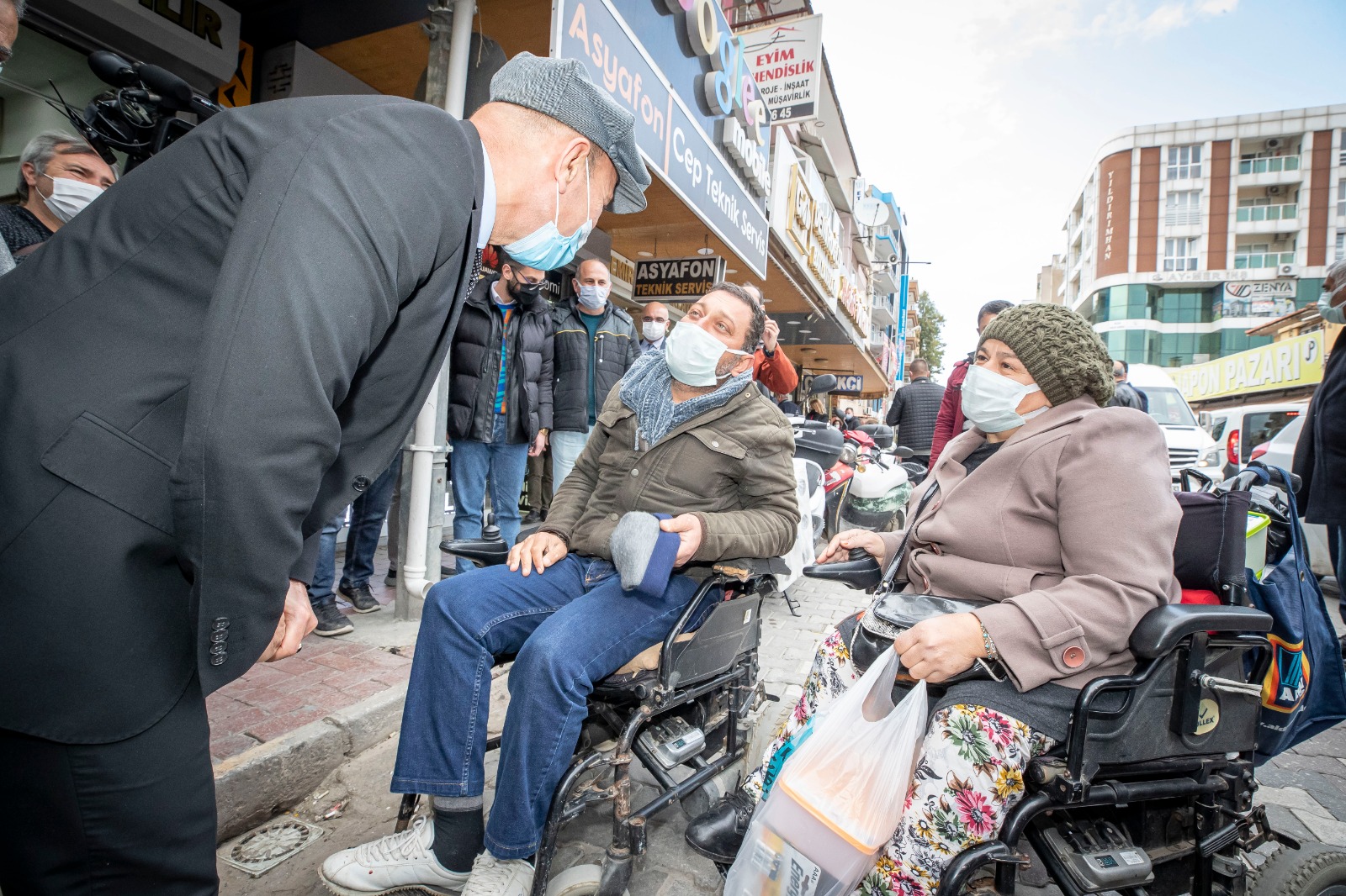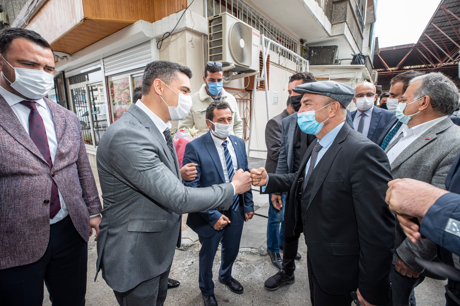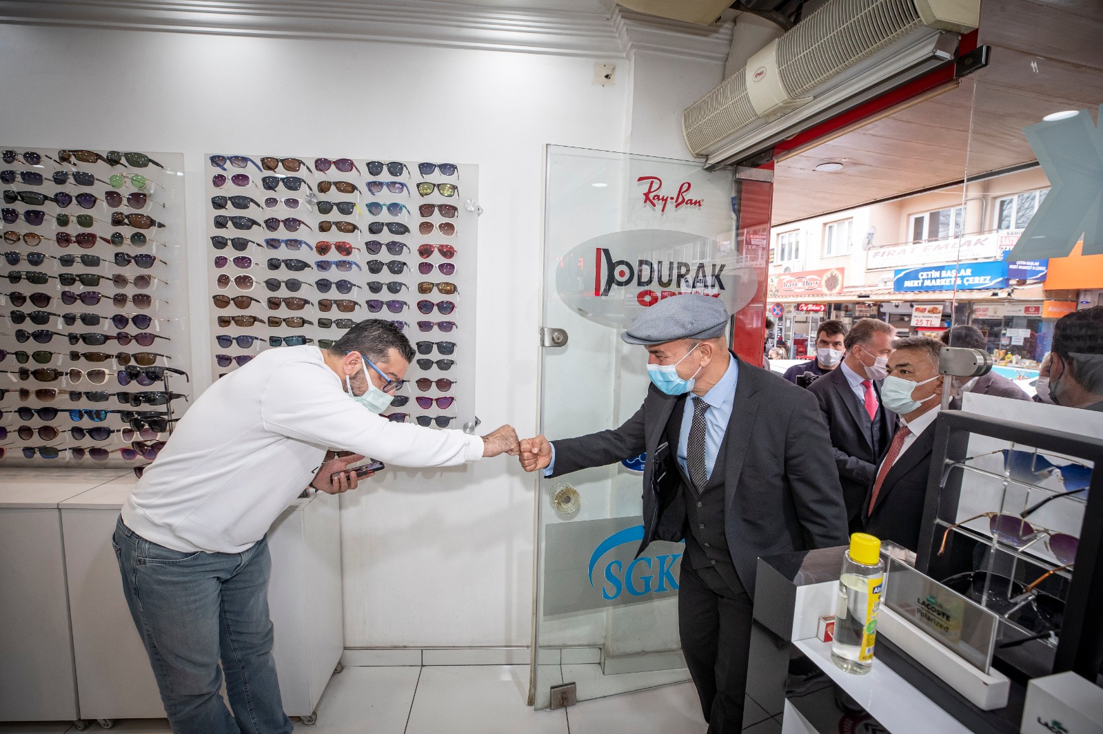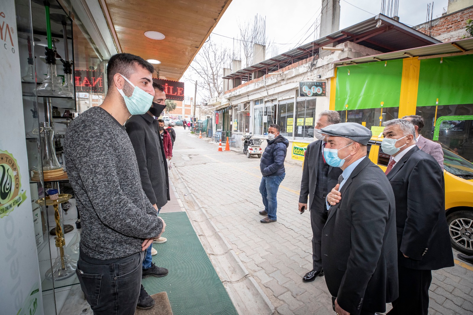 Torbalı Kazım Dirik Caddesi'nde esnafı ziyaret eden Soyer, vatandaşın sorunlarını dinledi.