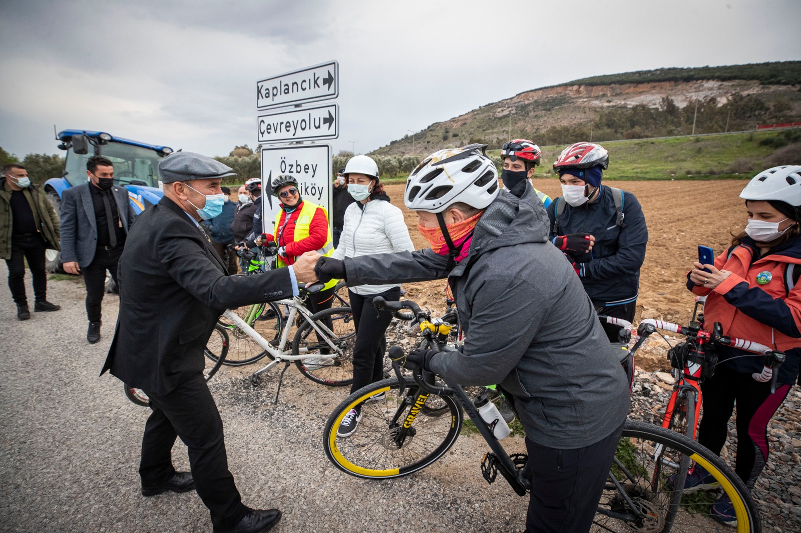 Başkan Soyer, buranın ardından Özbey Kaplancık yolu köprüsünü açtı. Mevcut köprünün dar olması ve araç geçişinde sıkıntı yaşanması nedeniyle yıkılarak yenisi yapılan köprü hakkında bilgi alan Soyer'e, vatandaşlar çiçekle teşekkür etti. Başkan Soyer, Keyfipedal Torbalı bisiklet grubuyla da fotoğraf çektirdi.