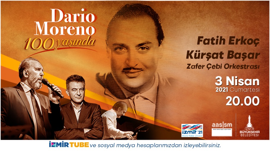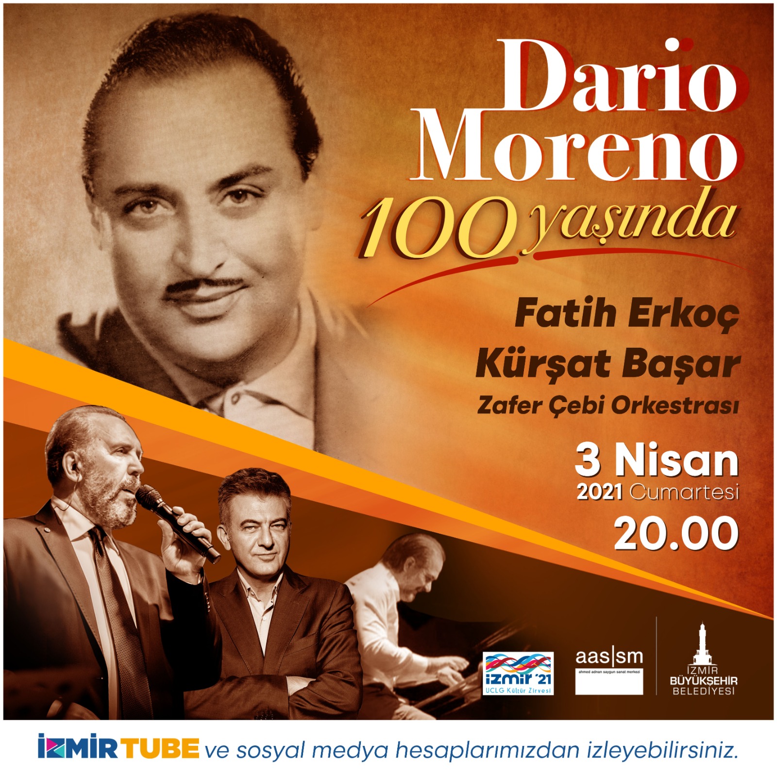 3 Nisan Cumartesi saat 20.00’de başlayacak konser İzmirtube’den yayınlanacak. Fatih Erkoç, Kürşat Başar’ın anlatımı ve Zafer Çebi Orkestrası eşliğinde Dario Moreno’nun şarkılarını seslendirecek. Konserde, Deniz ve Mehtap, Hatıralar Hayal Oldu, Sarhoş, Canım İzmir, İstanbul'un Kızları, Arkadaşımın Aşkısın, Kalenin Bedenleri, Quizas Quizas Quizas ve Bauna Sera şarkıları yer alacak.