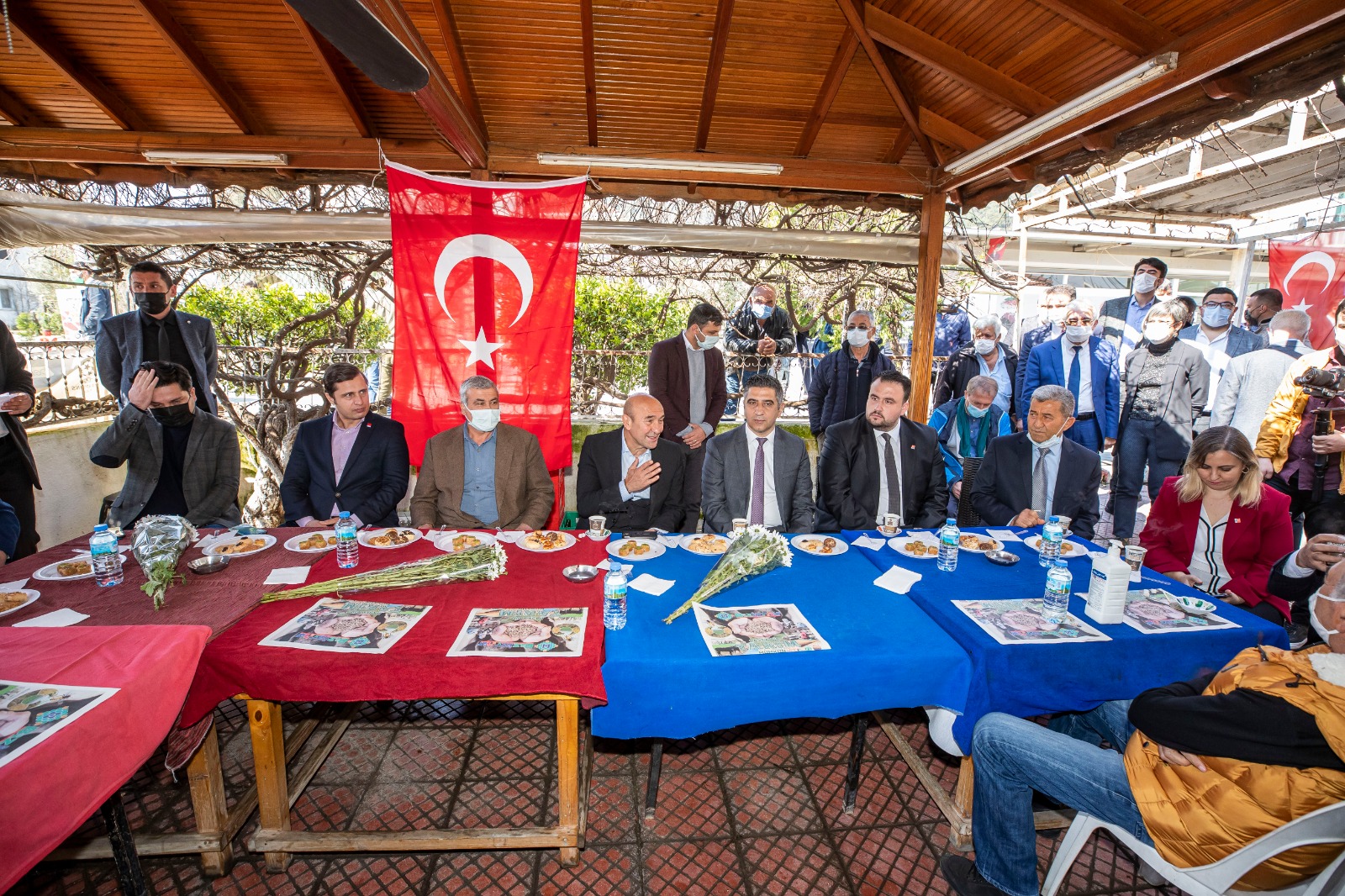 İzmir Büyükşehir Belediye Başkanı Tunç Soyer, Menderes ziyaretleri kapsamında CHP Menderes İlçe Başkanlığı'nda partililerle buluştu. CHP Menderes İlçe Başkanı Kemal Koç ve Menderes Belediye Başkanı Mustafa Kayalar, destekleri için Soyer'e teşekkür etti. CHP İzmir İl Başkanı Deniz Yücel ise, “Bütün engellere rağmen belediyelerimiz halka hizmete devam ediyorlar” dedi. Türkiye'nin zor dönemlerden geçtiğini belirten Başkan Soyer, “İzmir olarak çok şanslıyız. İzmir Büyükşehir Belediyesi'nin arkasında 20 senelik kurumsallaşmış yapı var. Baskılara direnen, o baskılara rağmen mahkemelere, saldırılara, Sayıştaylara, müfettişlere rağmen ayakta kalmayı başarmış, toz kondurmamış, lekelenmemiş bir Büyükşehir Belediyesi var. Biz pırıl pırıl, belediyeciliğin en güzel örneklerini ortaya koymuş bir belediye ile beraberiz. Herkesin bir mazereti olabilir ama biz başarılı olmak mecburiyetindeyiz. Zaman zaman algılar çok öne çıkıyor, birileri başka algılar üretmeye çalışıyor. Olgular her zaman algıların önüne geçer. Algıların makyajları elbet dökülür. Olgularla yaşar insanlar. Biz en başarılı olguları, hikayeleri İzmir'den, Menderes'ten yazmaya kararlıyız. Onun için gece uyumuyoruz, gündüz uyumuyoruz, canla başla çalışmaya devam ediyoruz” dedi. Soyer, parti içi birlik mesajı verirken, CHP İzmir Milletvekili Murat Bakan da, “İzmir Büyükşehir Belediyesi, Türkiye'nin bana göre rol model belediyesi” dedi.